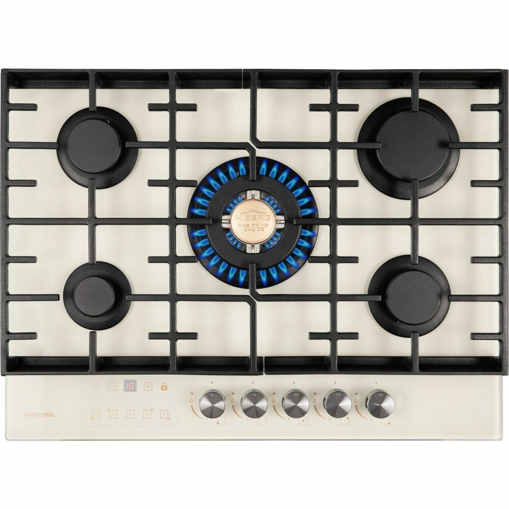 Отзывы на Газовая варочная поверхность HIBERG VM 7155 Y, 5 конфорок, таймер отключения газа всех конфорок, газ-контроль, электроподжиг, чугунные решетки.