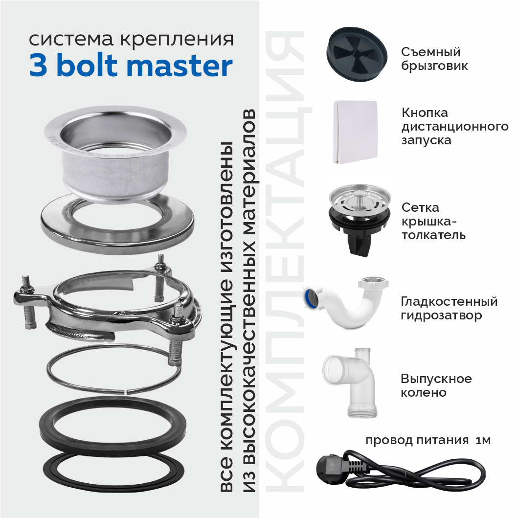 Измельчитель пищевых отходов WASTE FIGHTER 42 Premium Pro Max, кухонный встраиваемый под раковину, 1.25 л