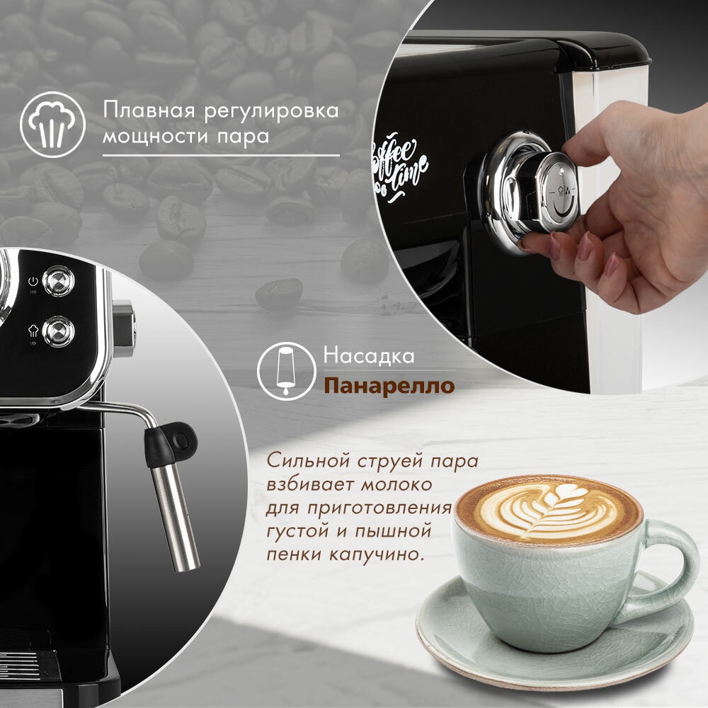 | Дополнительная информация | Функция памяти объема напитка, Защита от перегрева и избыточного давления, Съемный фильтр на одну и две чашки из нержавеющей стали, Съемный бак для воды, Насадка "ПАНАРЕЛЛО" для приготовления плотной молочной пены |