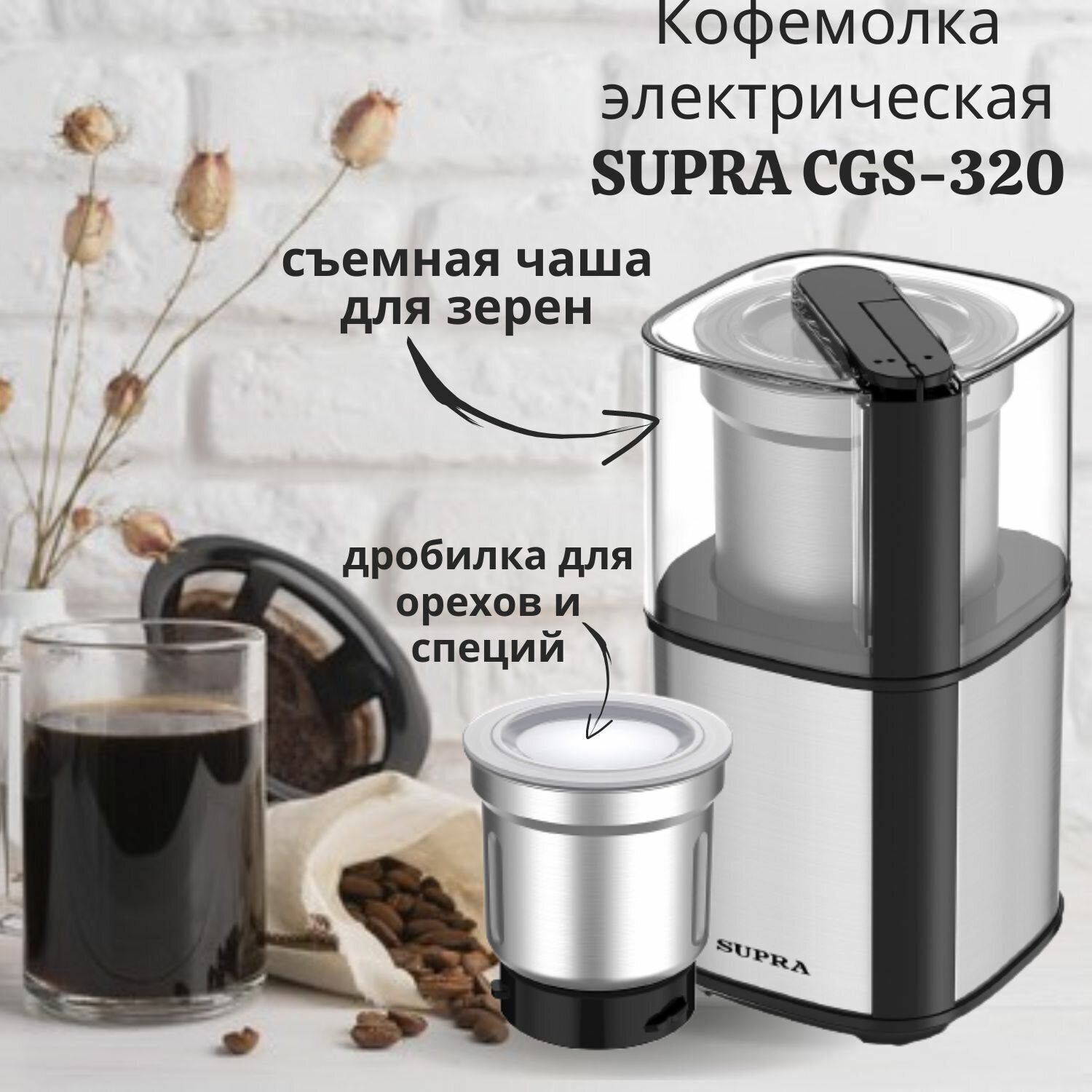 10 цен на Кофемолка Supra CGS-320 300Вт сист.помол.:ротац.нож вместим.:80гр серебристый