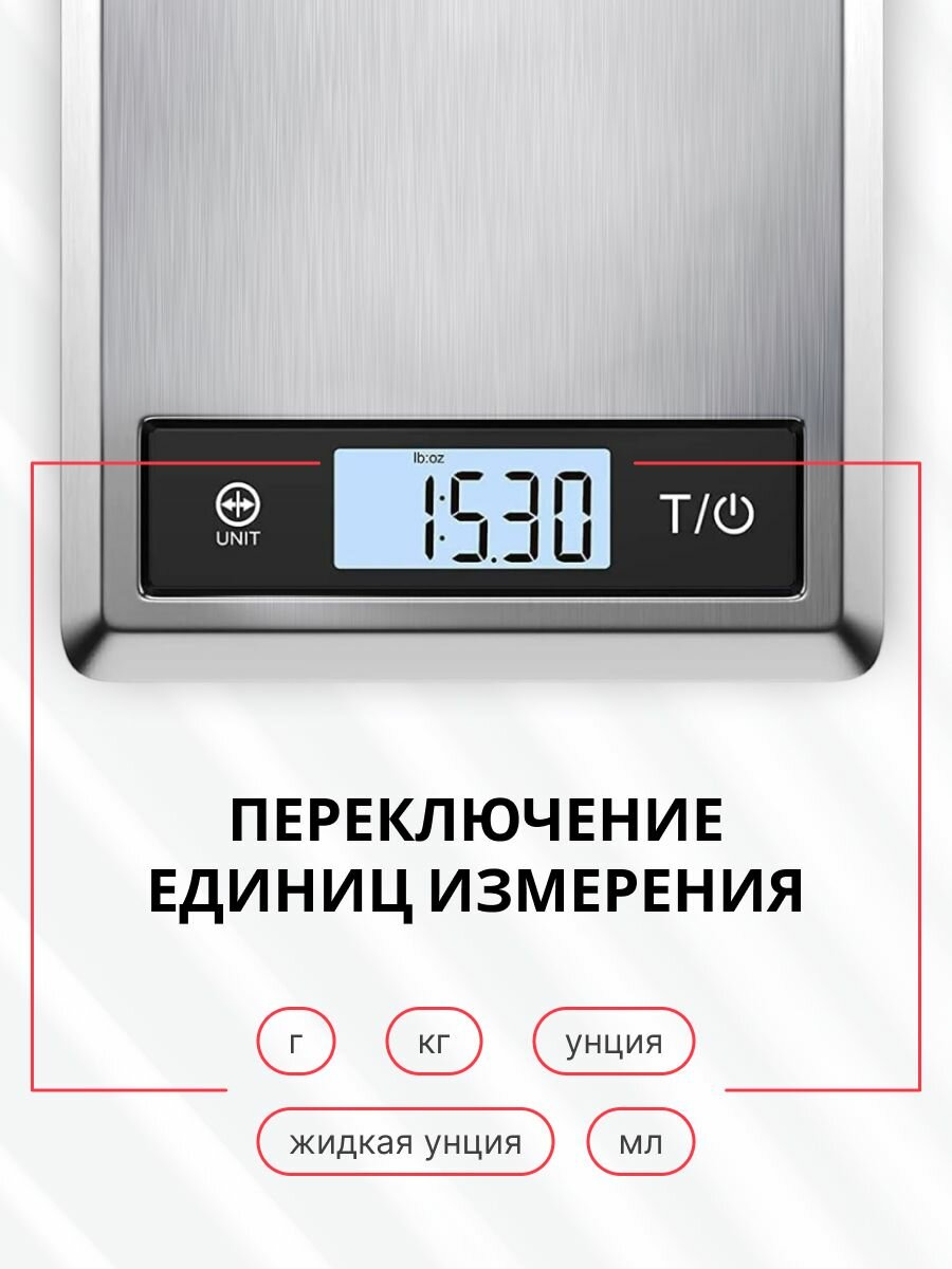 10 цен на Весы кухонные умные Renpho Calibra 1 ES-SNS01 из нержавеющей стали, с bluetooth и функцией учета тары, до 5 кг, серебристые