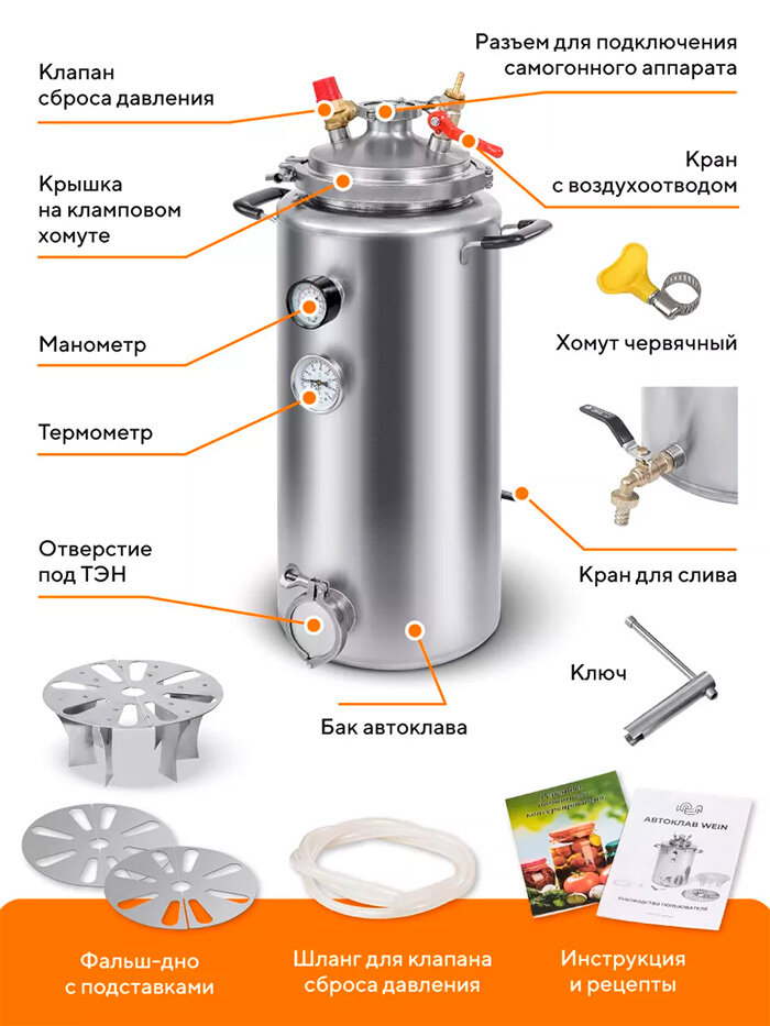 Автоклав Wein Вейн 23 литра, домашняя консервация на 15 банок. информация: