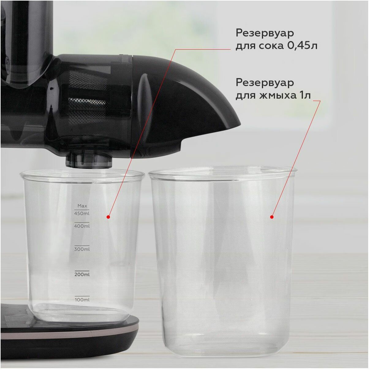 Соковыжималка шнековая BQ J2001 150 Вт, 450 мл /Черный-Серебро