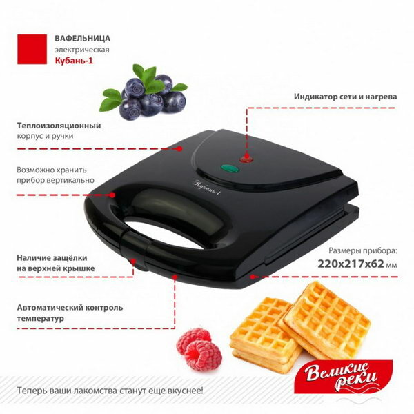 Вафельница "Кубань-1", 2 венские вафли, 800 Вт, чёрный информация: