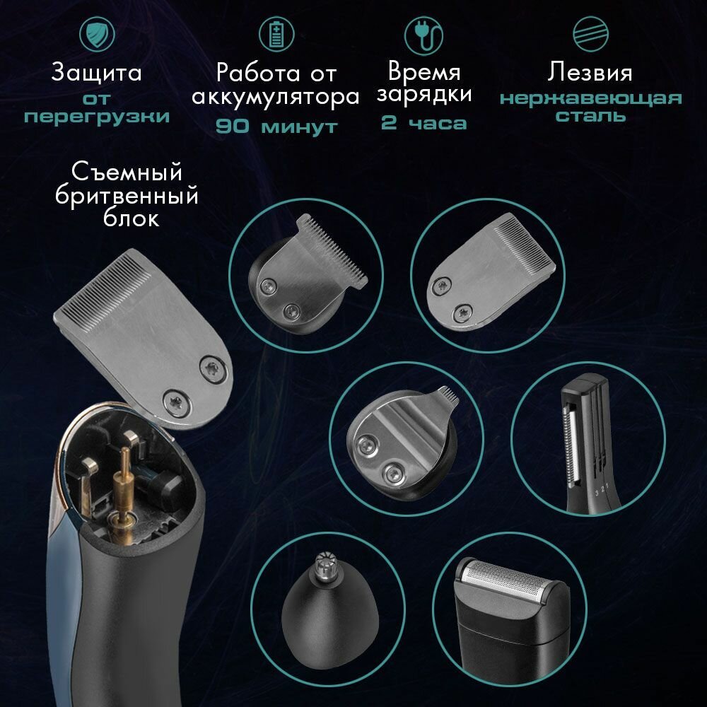 Триммер для бороды и тела универсальный многофункциональный 6 в 1, Бородовой