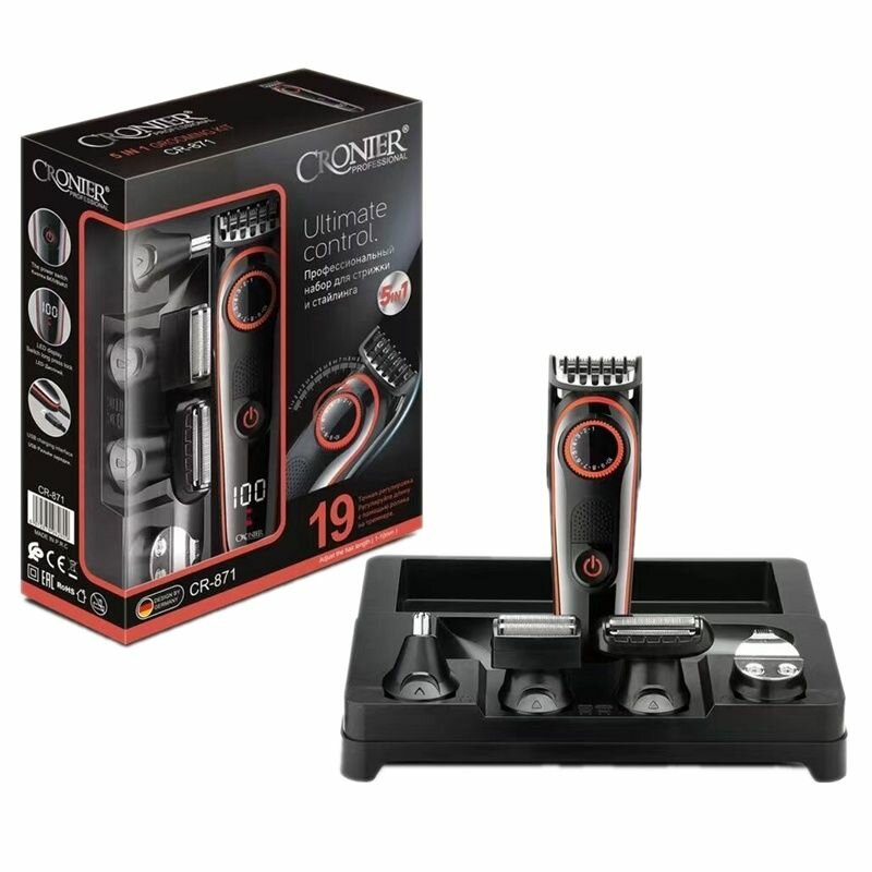 Набор для стрижки Cronier CR-1224, профессиональная электробритва 3 в 1 с насадкой для окантовки, триммер для носа и ушей