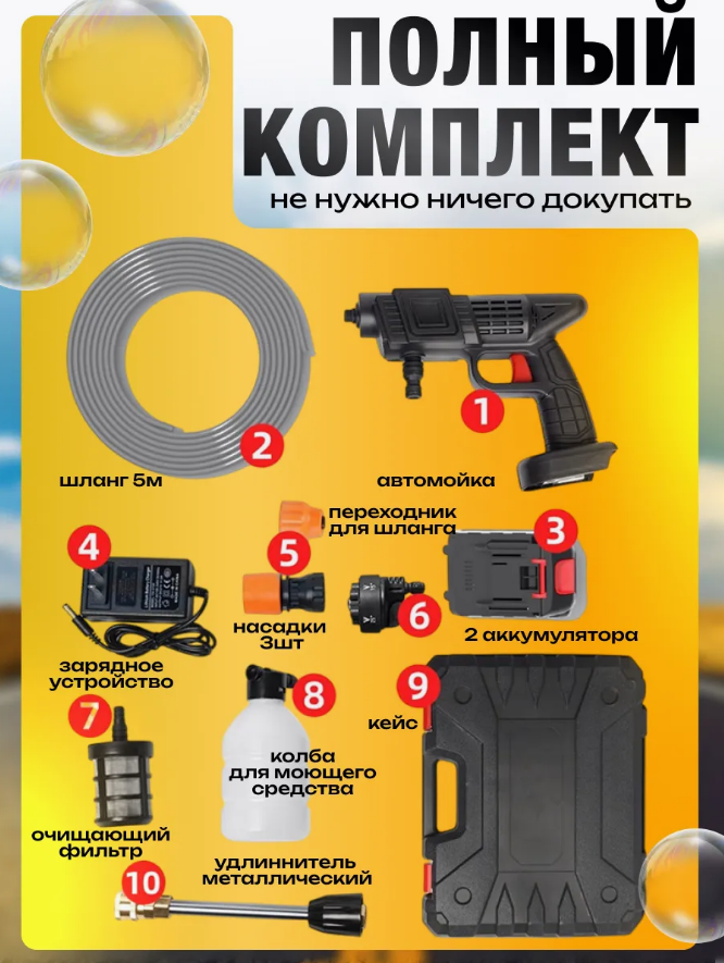 Аккумуляторная автомойка высокого давления с 2 аккумуляторами информация: