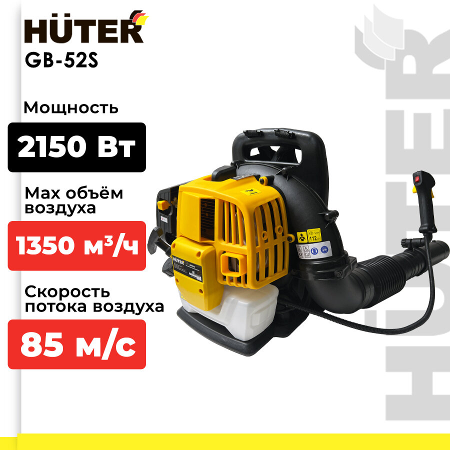 Бензиновая воздуходувка Huter GB-52SH (1350 м³/ч, 2,15 кВт, 1.4 л, обдув) информация: