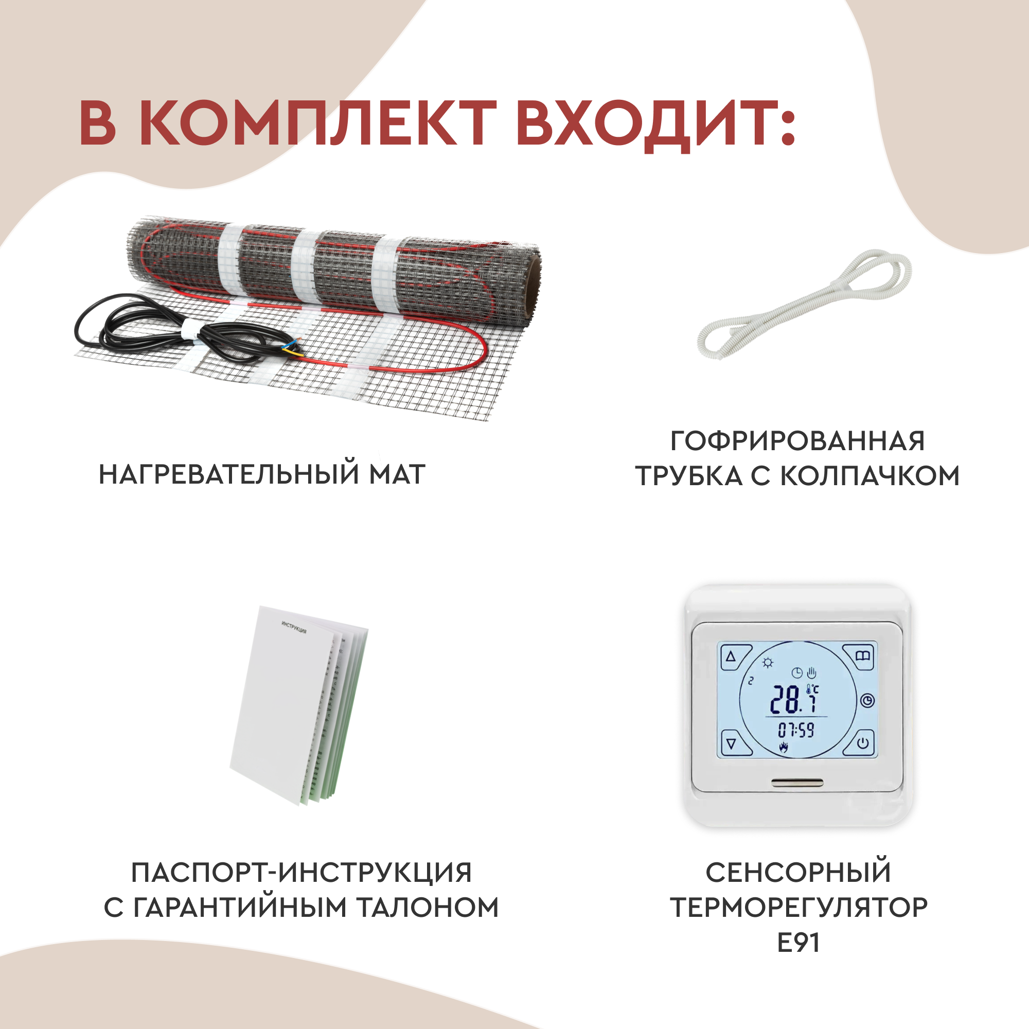Теплый пол под плитку 5 м2 (нагревательный мат) с сенсорным терморегулятором Е91 Обогрев Люкс информация: