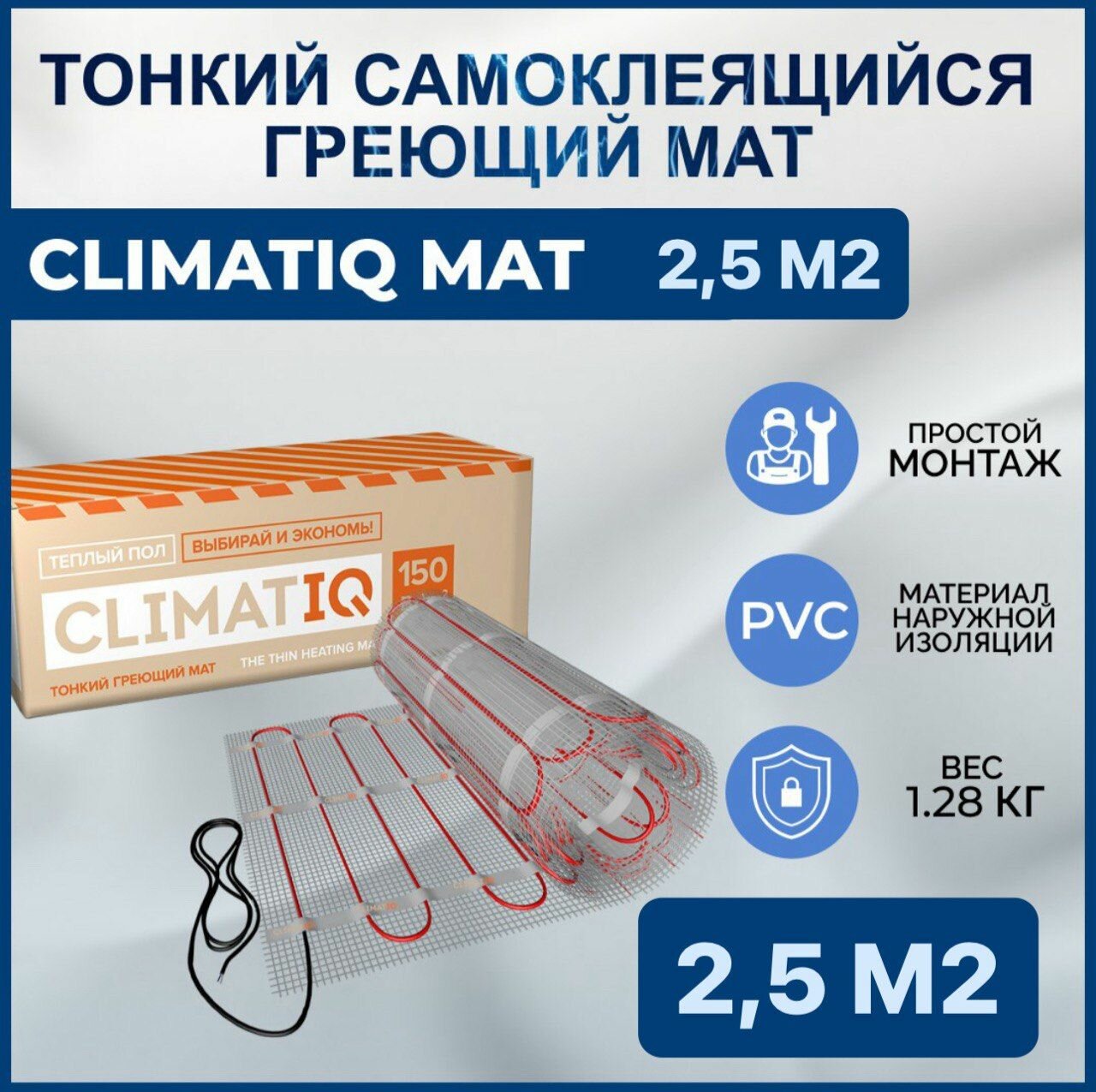 Тонкий самоклеящийся греющий мат CLIMATIQ MAT 2.5 м2 информация: