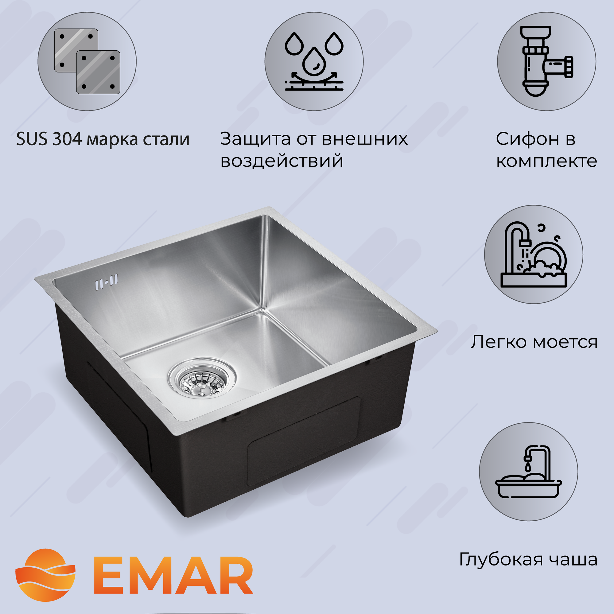 Кухонная мойка с PVD EMAR EMB-131 PVD Nano Satine информация:
