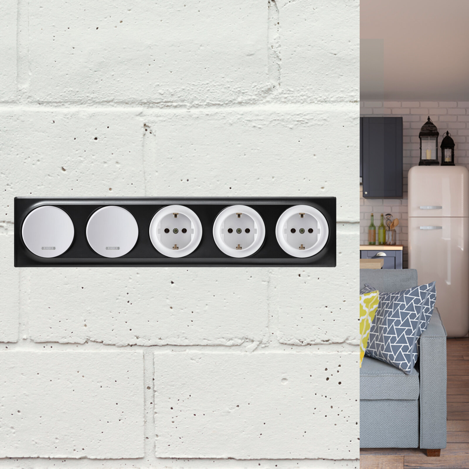 - Розетки, выключатели и рамки