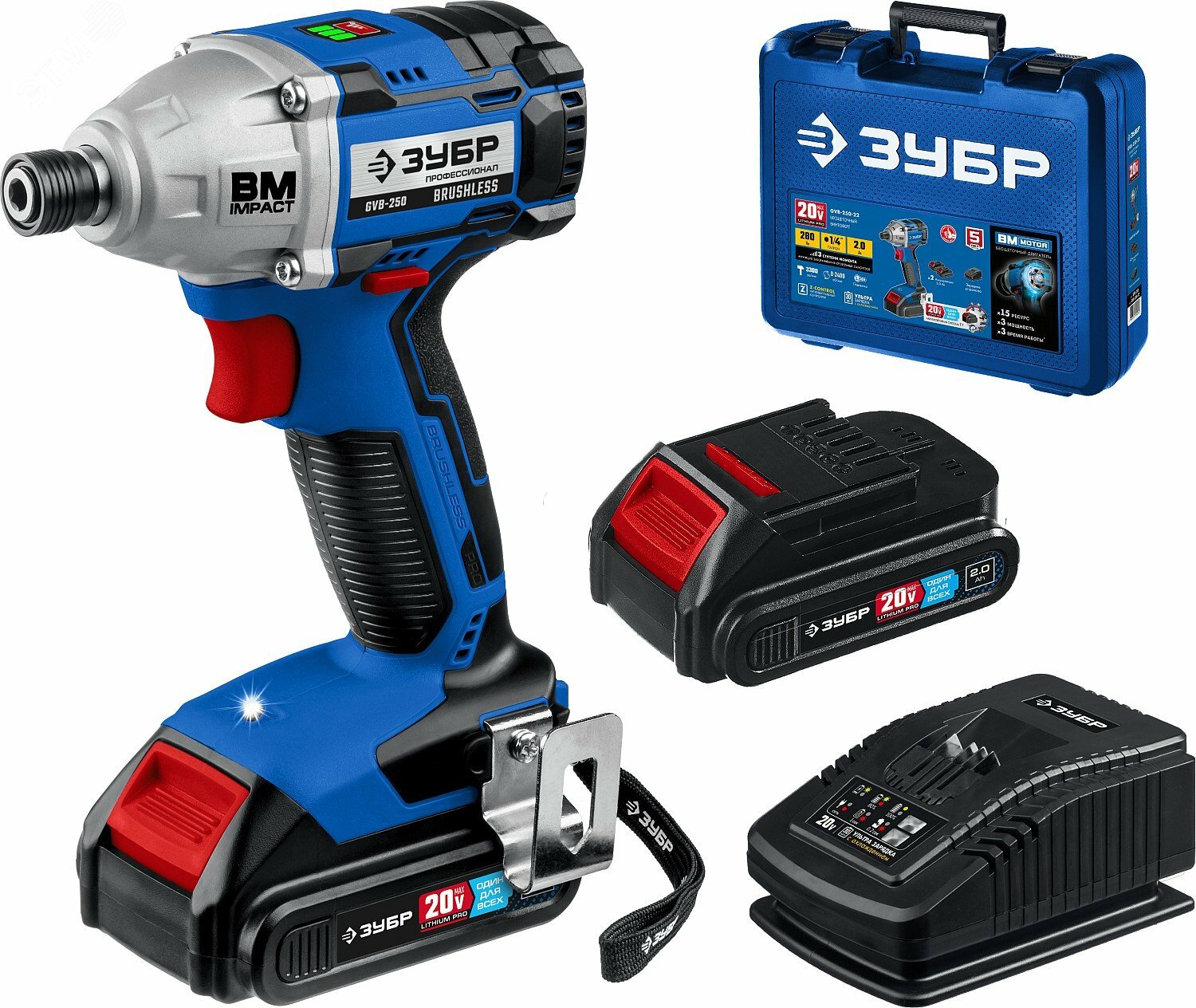 Винтоверт ударный аккумуляторный бесщеточный Зубр GVB-250-22, 20 В Li-Ion 2x2 Ач 280 Нм