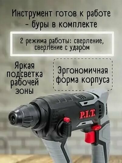 Аккумуляторный бесщеточный перфоратор P.I.T. PBH20H-22A, 20 В, 1.5 Дж, 5000 ударов