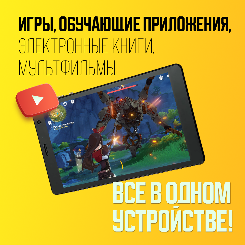 | Комплектация | Планшет, Зарядка Type-C, Инструкция, Силиконовый чехол, Стилус, Игрушки |