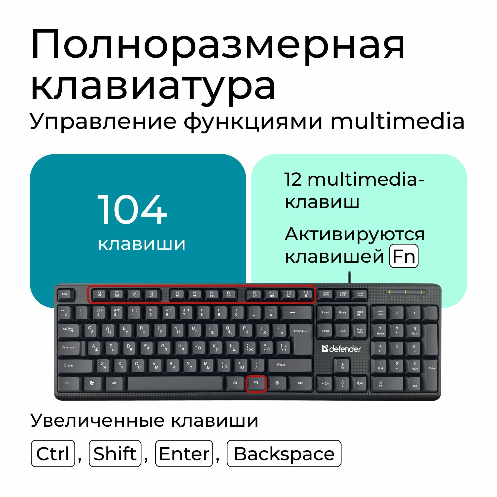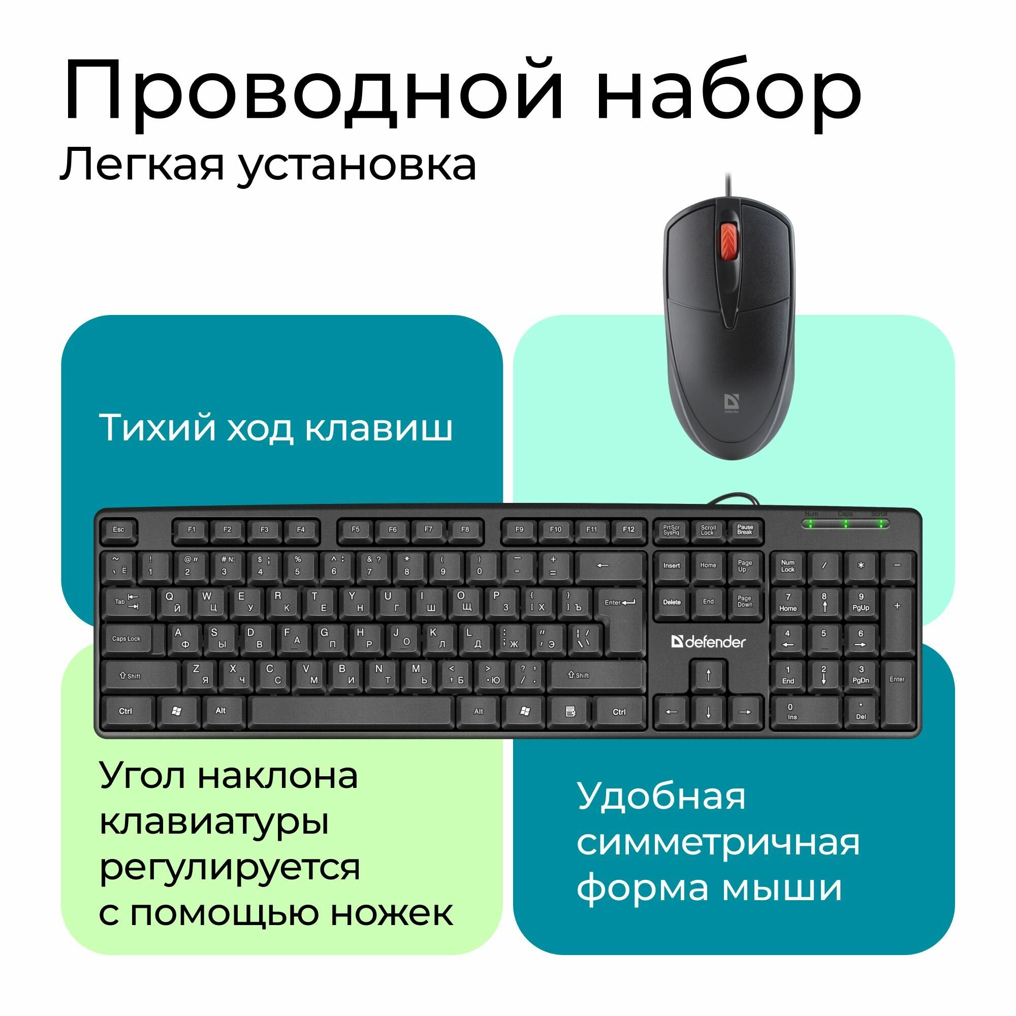 Клавиатура и мышь Defender LINE C-511 RU проводные черный (45511) 655 ₽