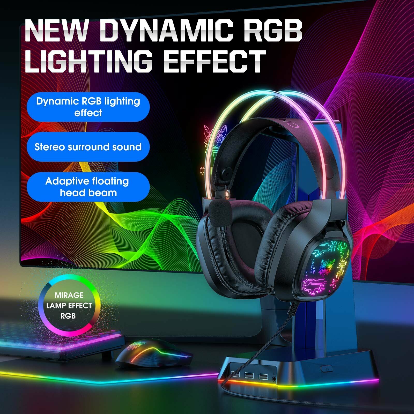 Наушники игровые Onikuma K8 RGB Light - Черные (OIKGHK8-BKRGB)