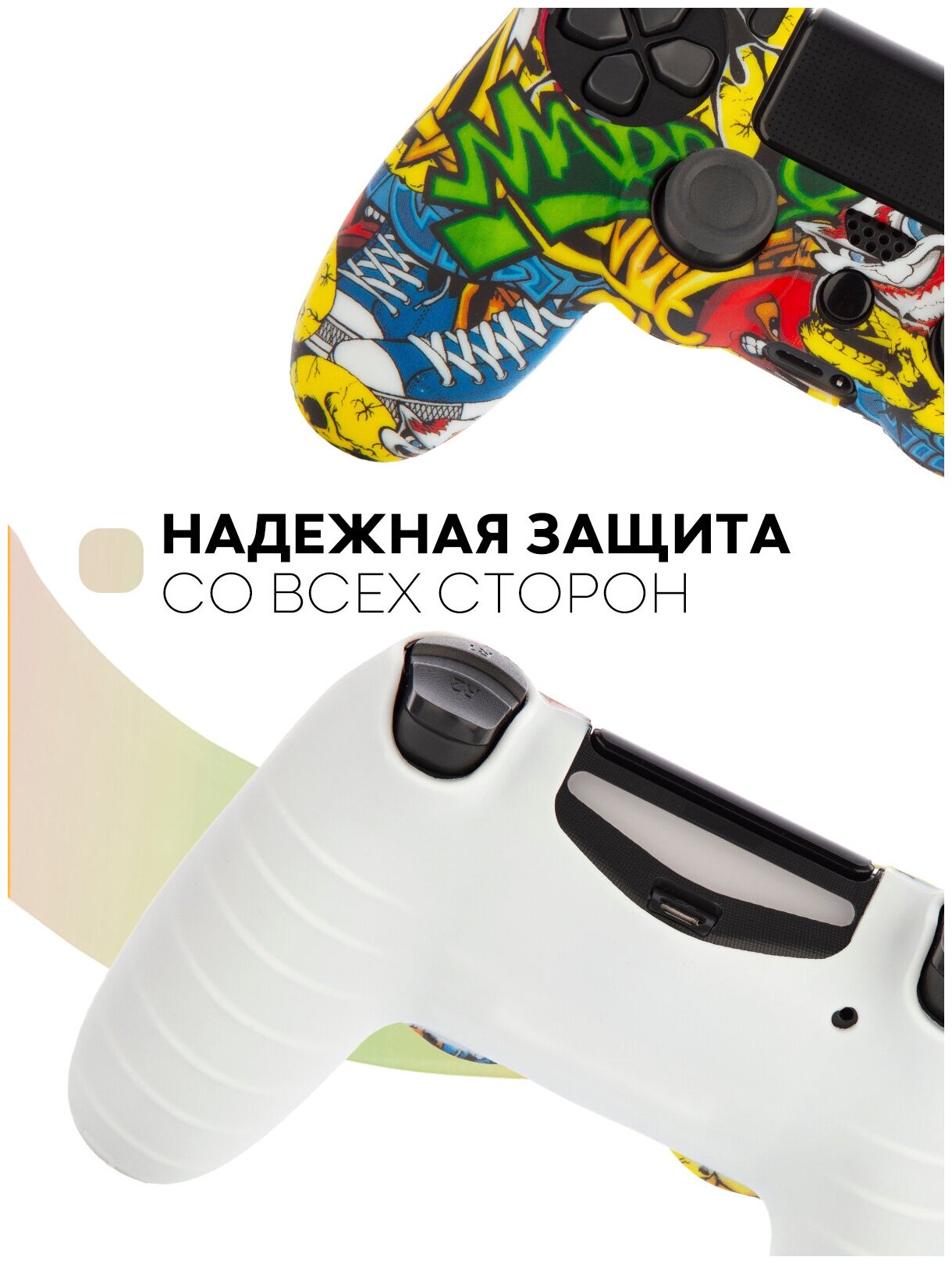 Защитный силиконовый чехол для геймпада PS4 (матовая накладка для контроллера ПС4) с рисунком, граффити 510 ₽