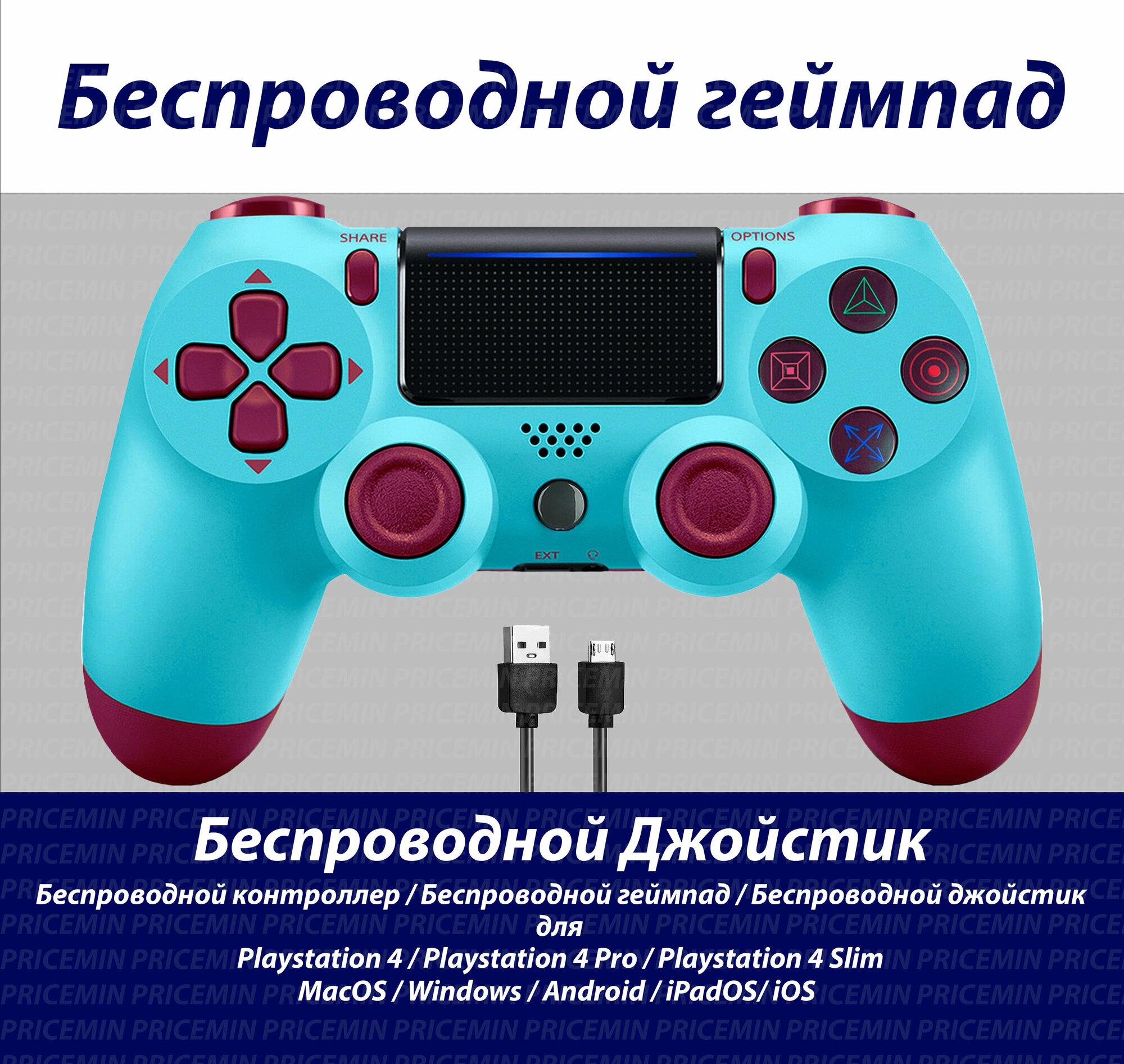 Джойстик для Playstation 4, Геймпад подходит для PS4, PC, MacBook, Android, IOS, беспроводной джойстик bluetooth для ПК, DUAL, Мятный, Pricemin
