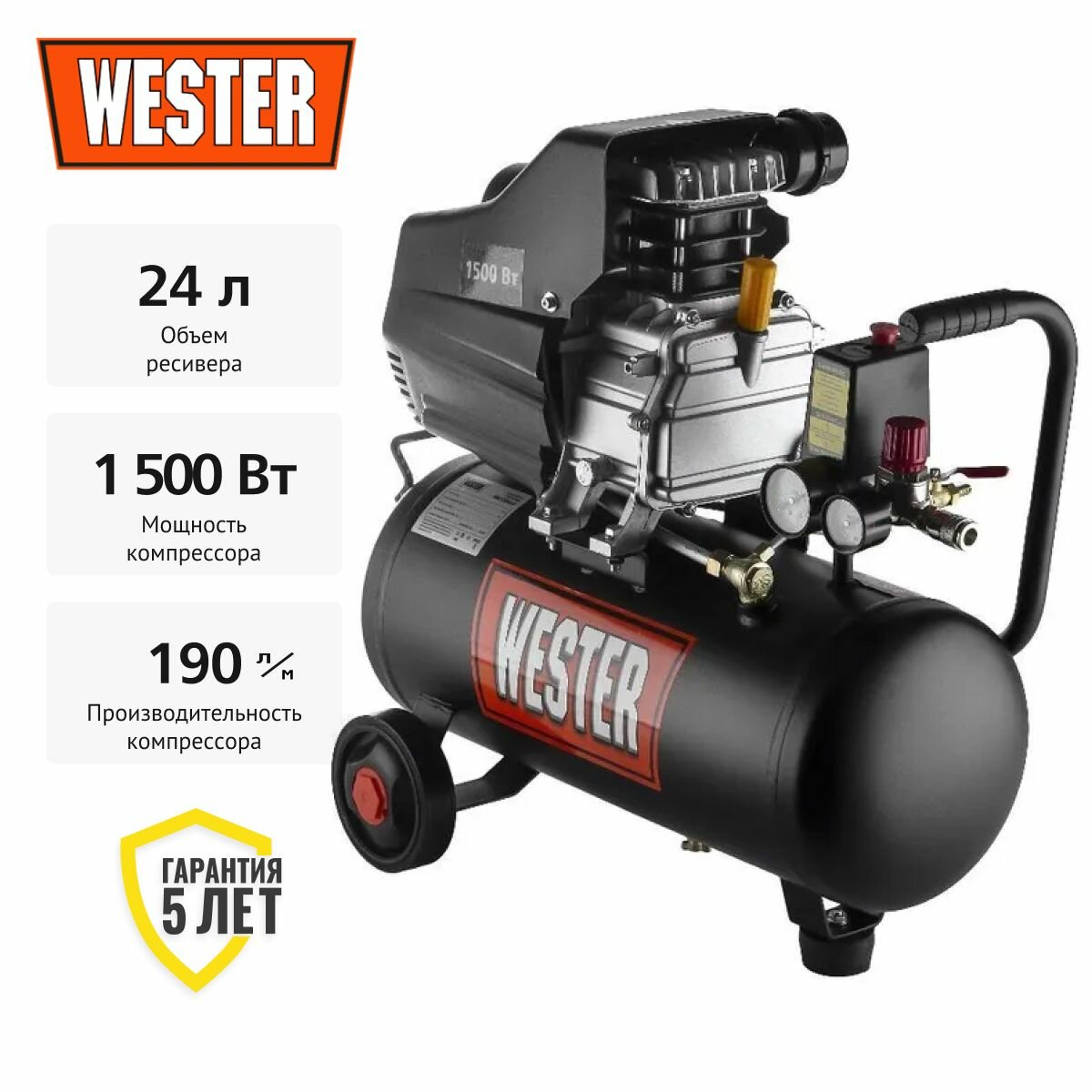 10 цен на Компрессор воздушный WESTER WK1500/24, поршневой масляный, 24 литра, 1500 Вт, 190 л/мин, 8 бар