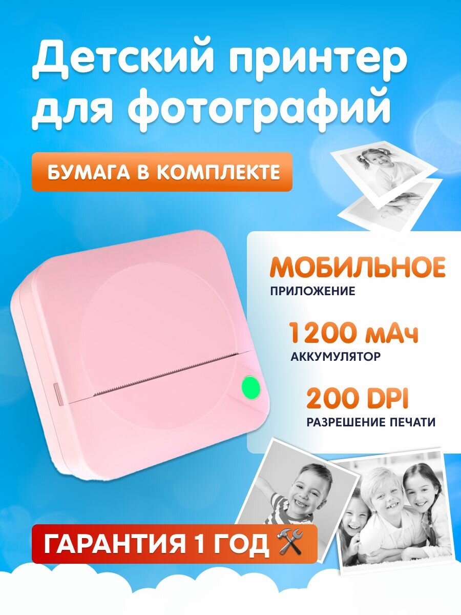 Отзывы на Портативный мини принтер для телефона Kid Joy, 200DPI, Bluetooth 5.1, (C17) Pink
