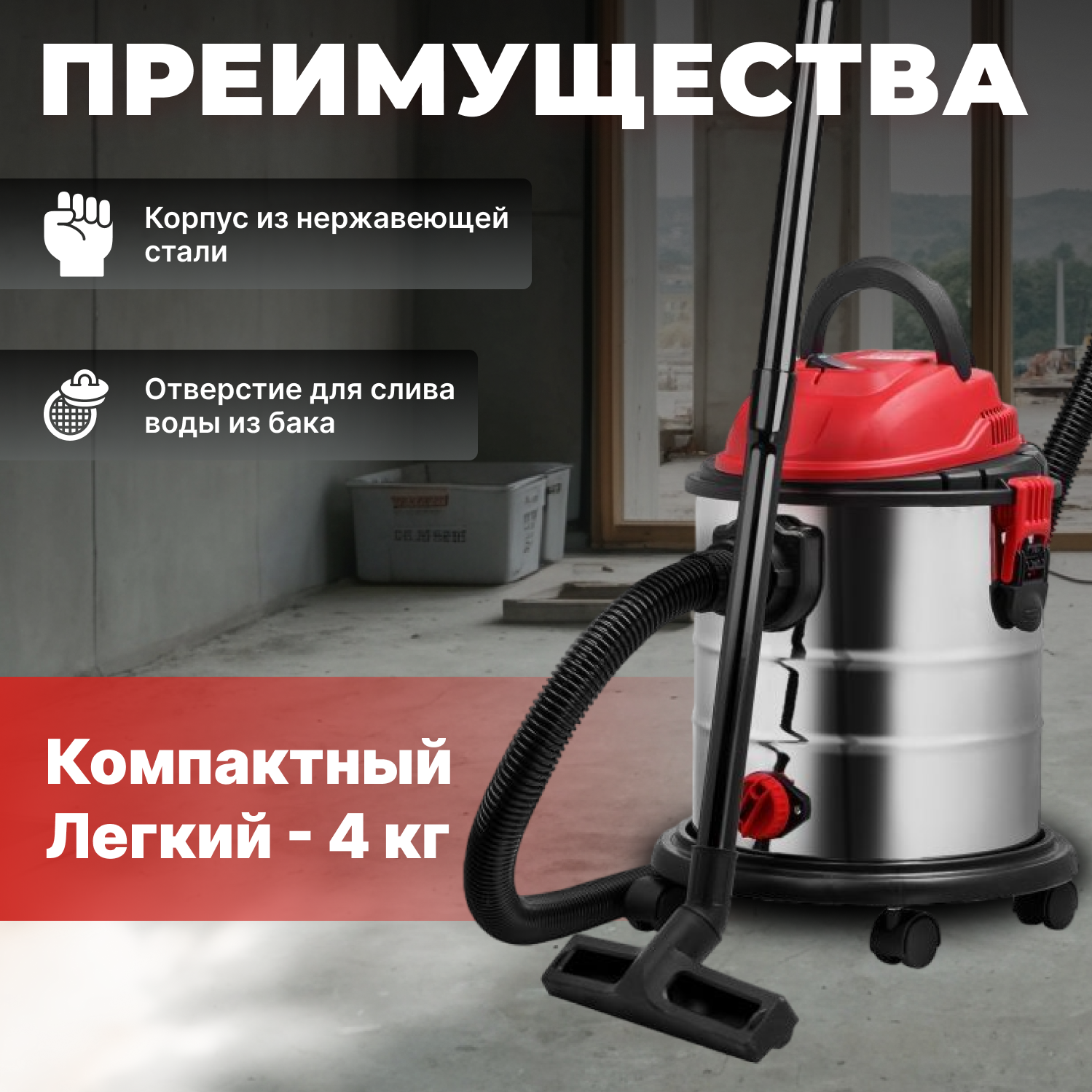 Профессиональный пылесос Wortex VC 3016-1 WS, 1600 Вт