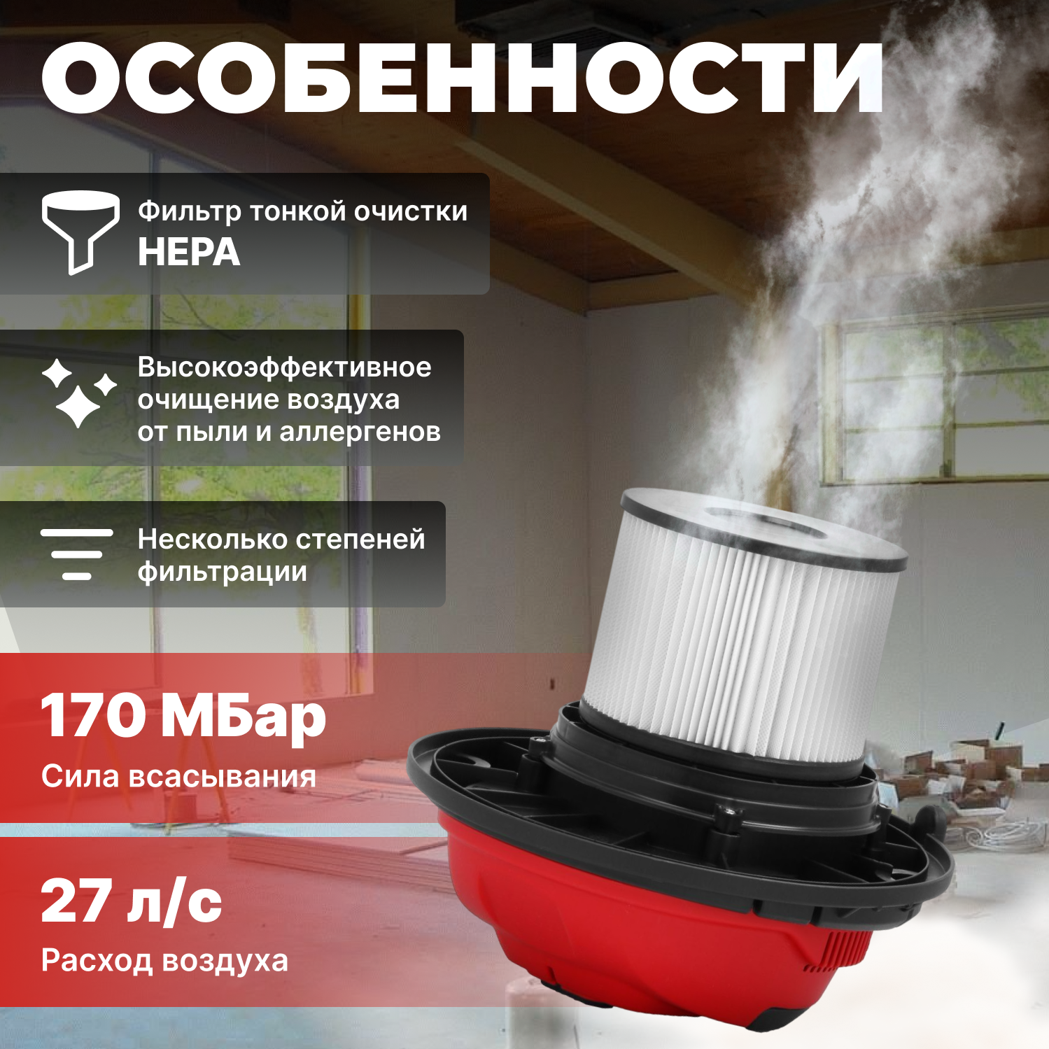 | Разрежение | 170 мБар |