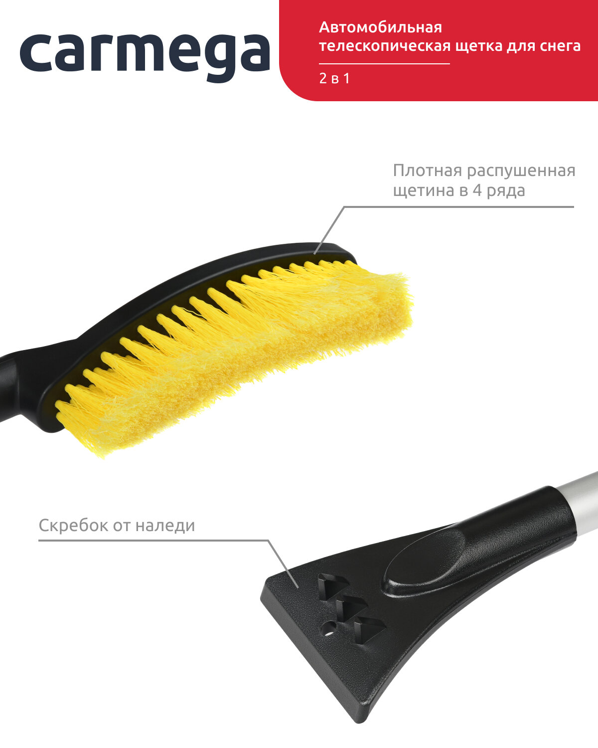 Отзывы на Телескопическая автомобильная щетка для снега CARMEGA 77-99 см со скребком для льда, мягкая ручка