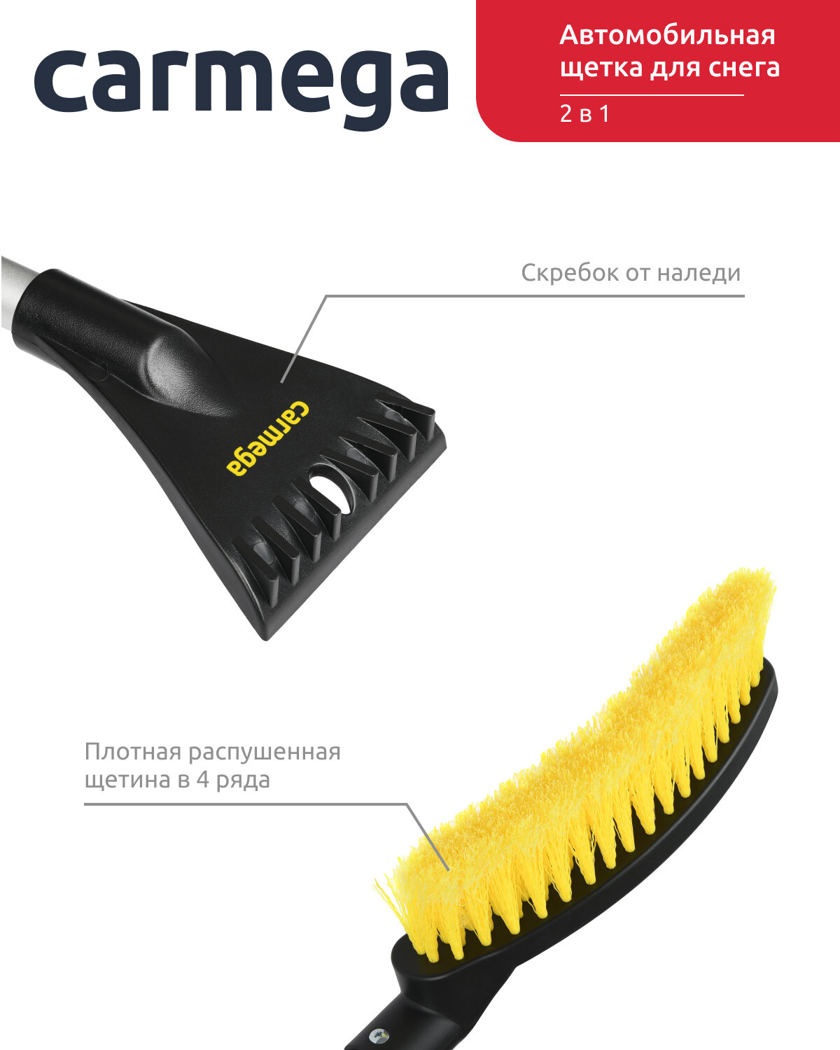 10 цен на Автомобильная щетка для снега CARMEGA 63см со скребком для льда, мягкая ручка