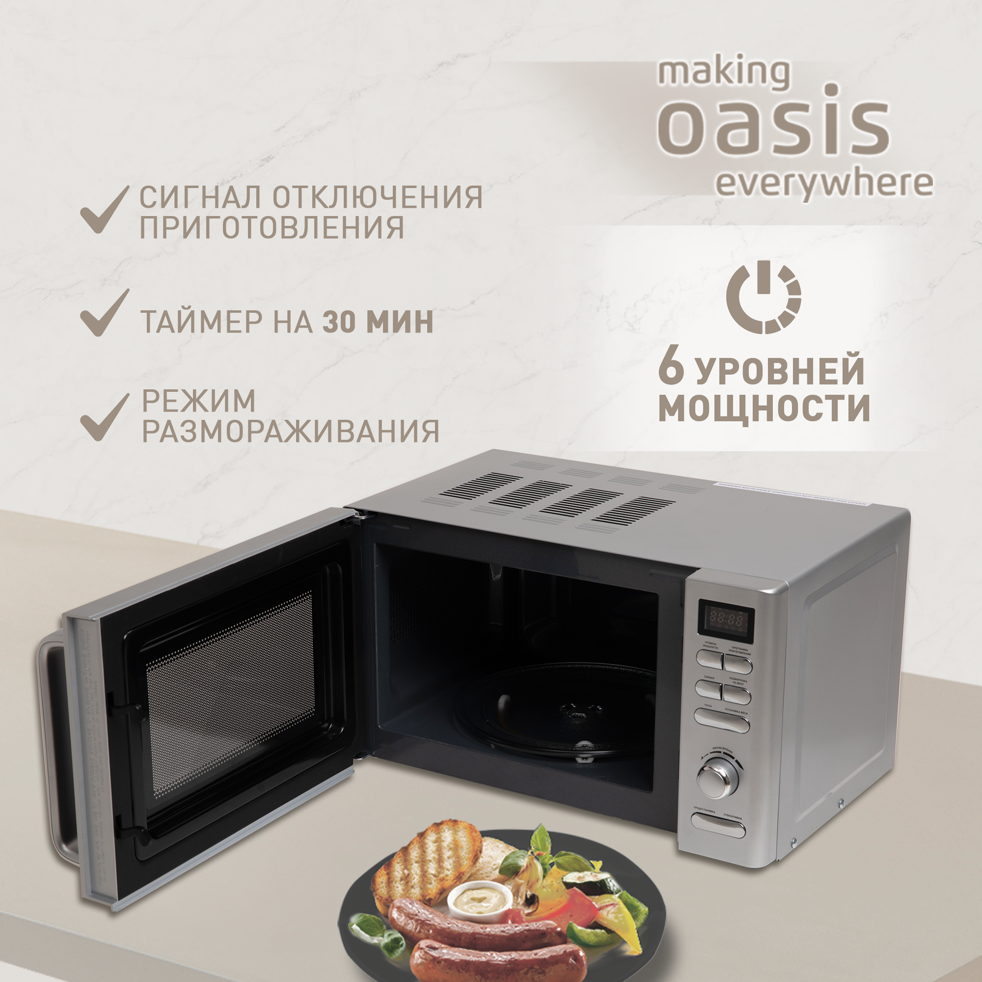 Микроволновая печь Oasis MW-80ES, серебристый 7 907 ₽