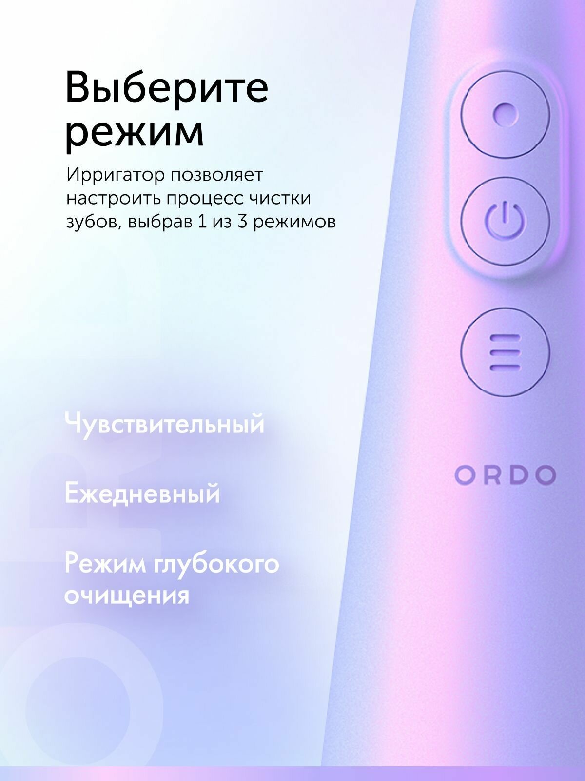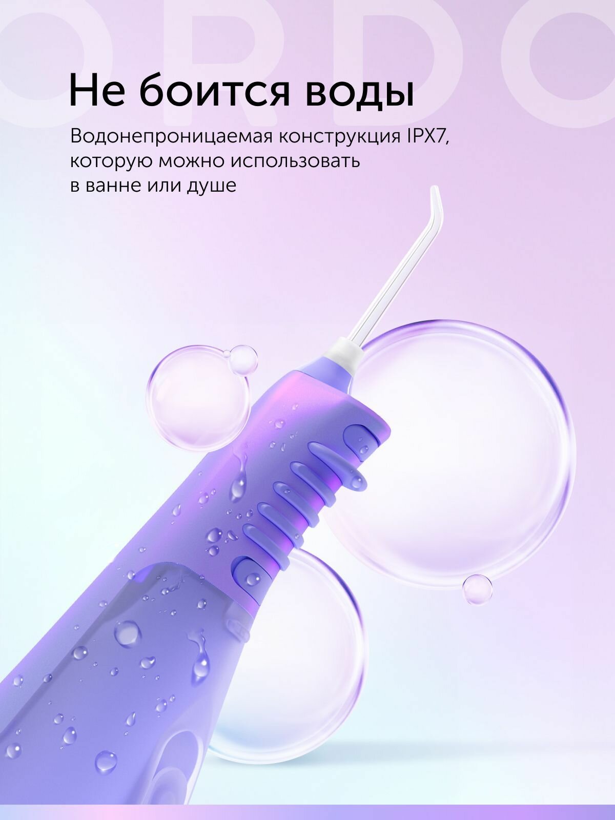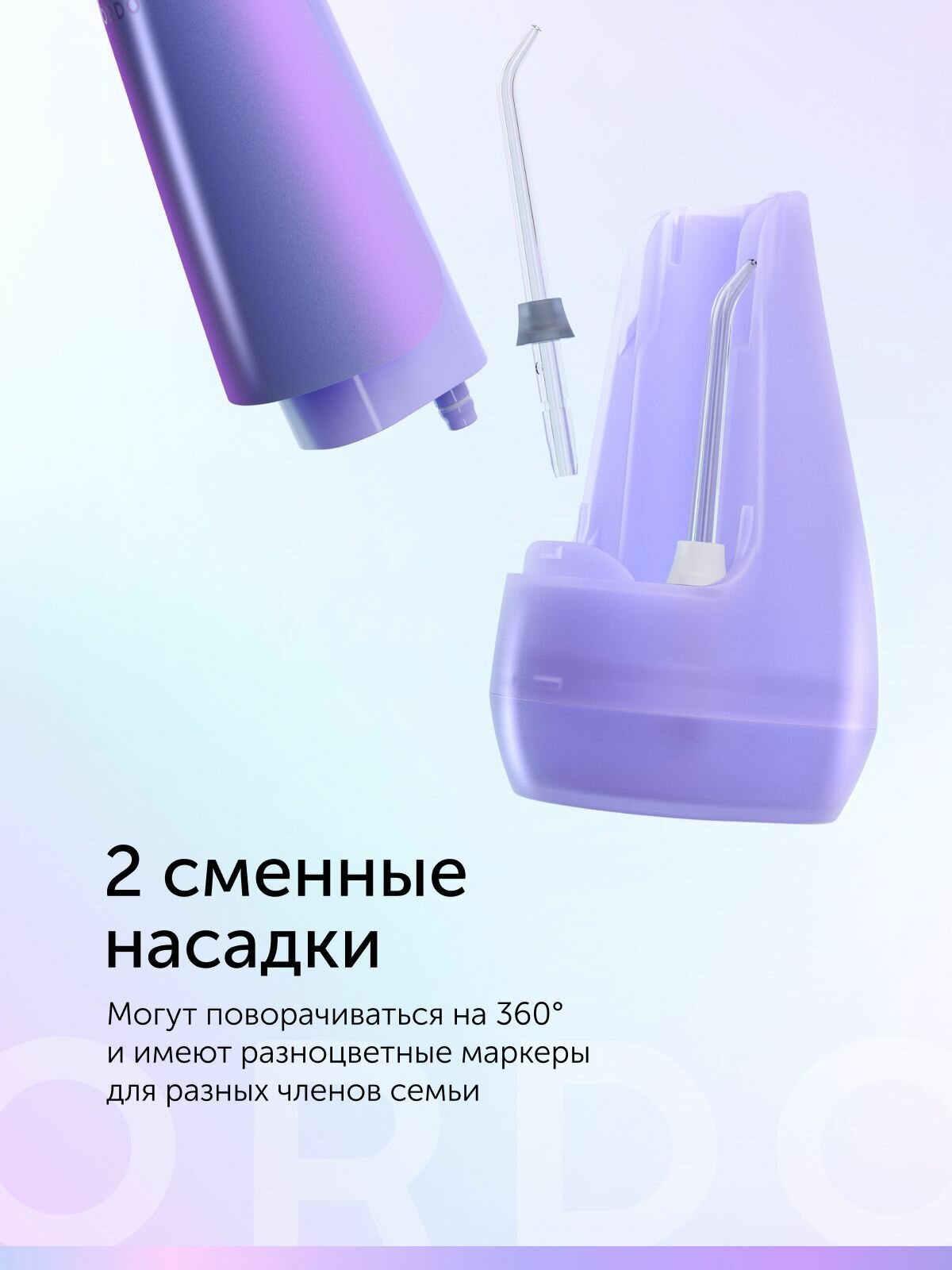 10 цен на Ирригатор для полости рта и зубов портативный ORDO Hydro Sonic с 2 насадками, 3 режима работы, резервуар 260 мл, фиолетовый