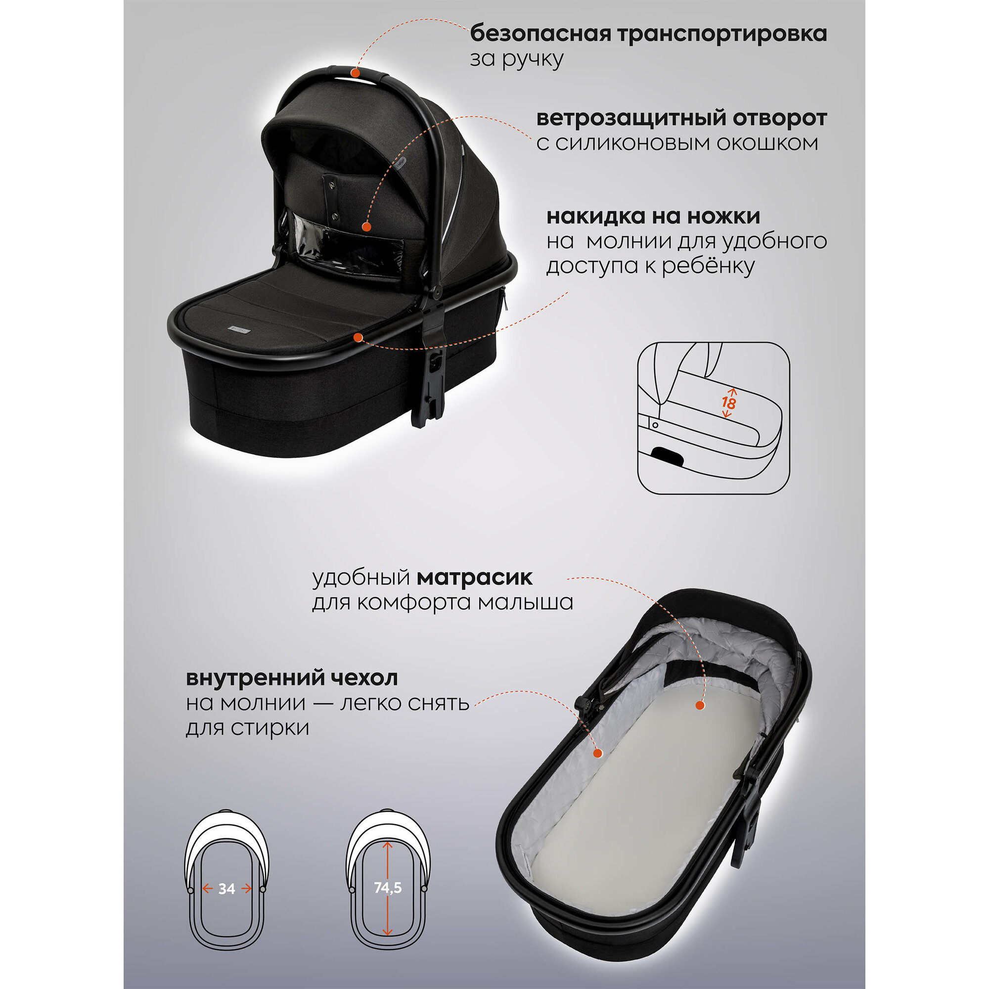 | Длина люльки | 74 см |
