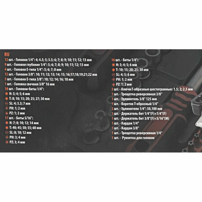 Forcekraft Набор инструментов 108 пр. 1/4" 3/8"(6гр.)(4-22мм) fk-41082-5ds-м 52659 FK-41082-5DS-м(52659) информация: