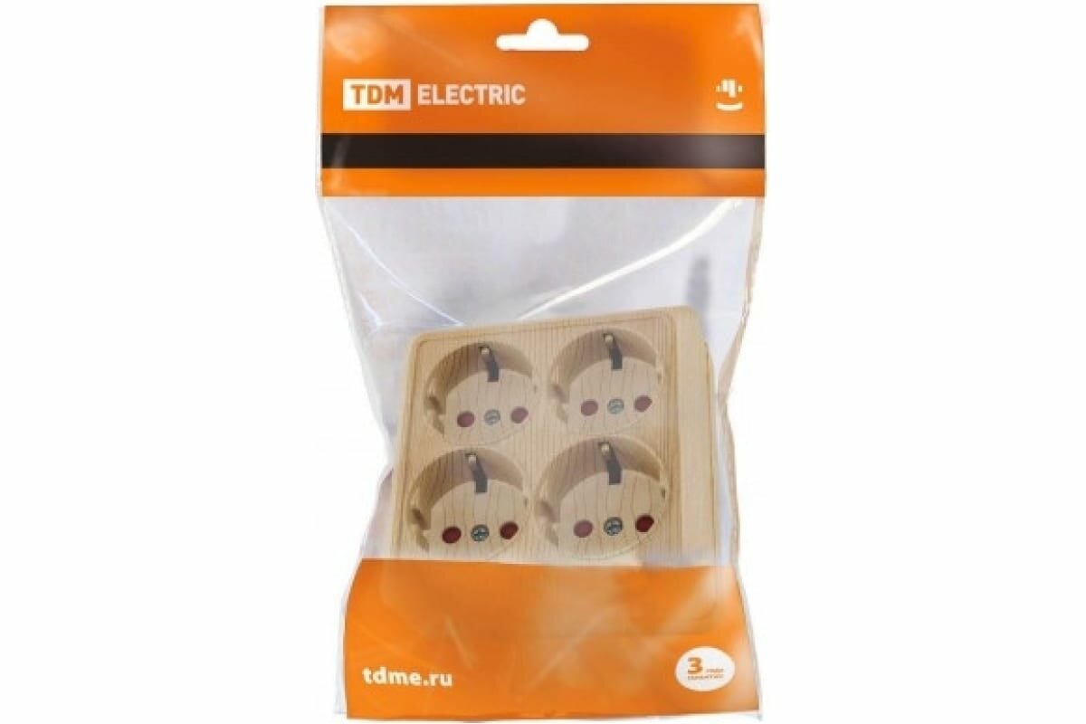 Отзывы на Розетка четырехместная 2П+3 открытой установки IP20 16A с защитными шторками сосна "Ладога" TDM