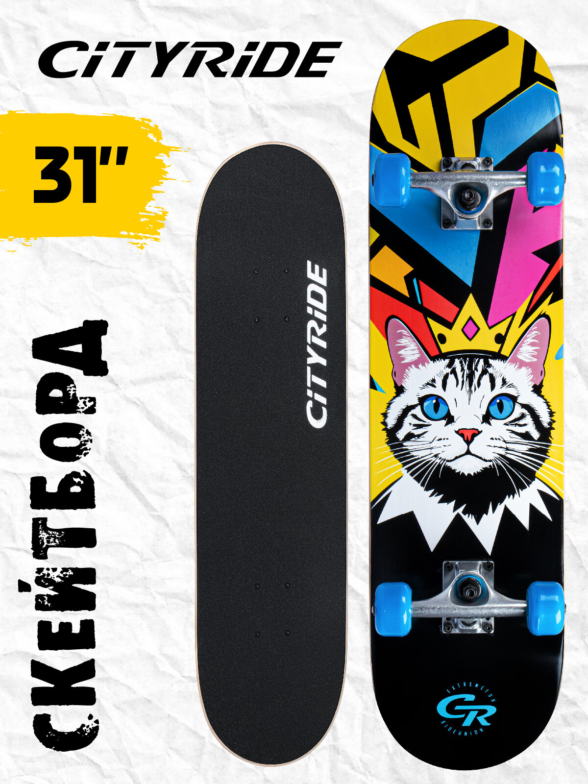 Скейтборд ТМ CITYRIDE, дека клен 9 слоев, размер 31"*8", колеса: 54*36мм, PU, 85А, ABEC-7, JB4200200 3 500 ₽