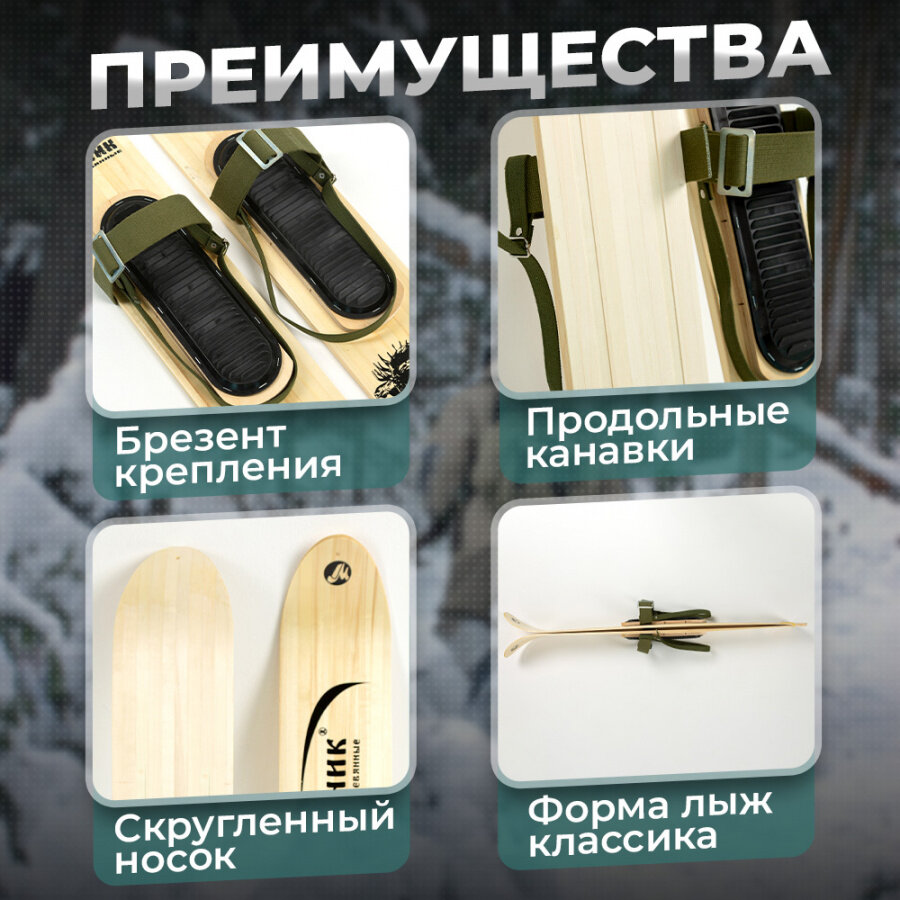 Лыжи охотничьи деревянные Маяк Рыбацкие 120 х 11 см с креплением брезент информация: