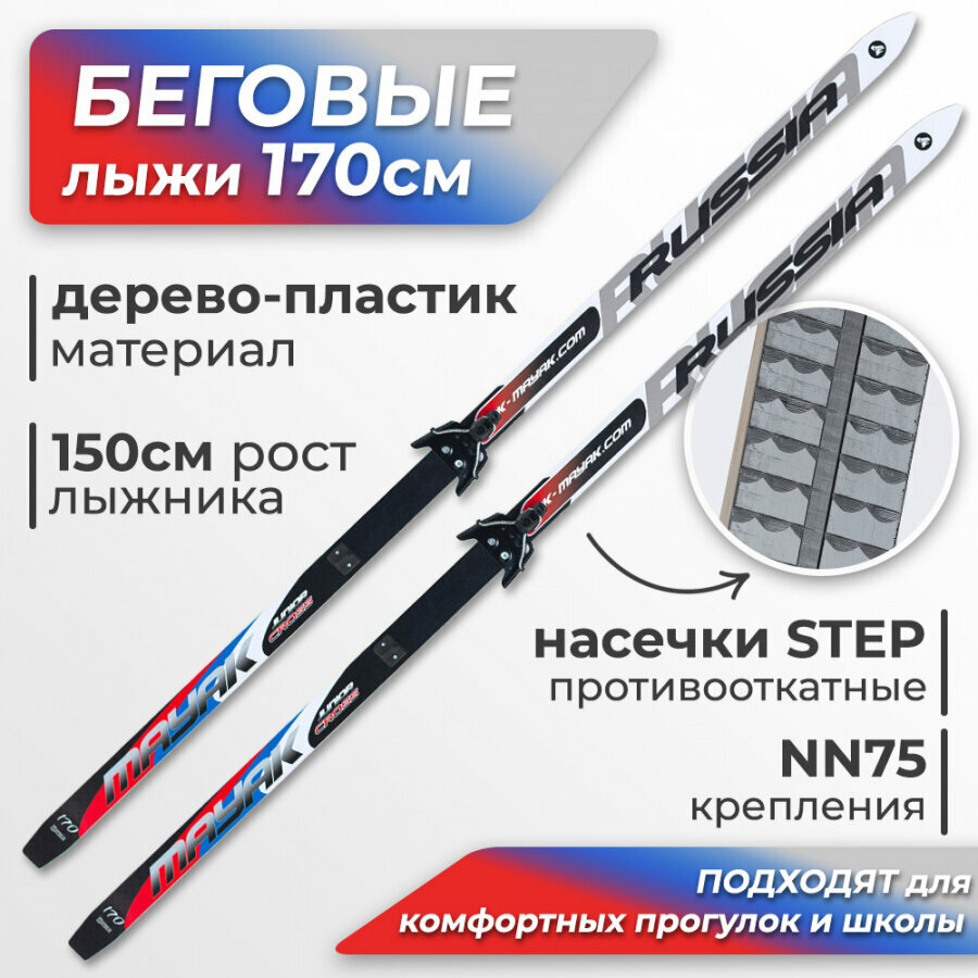 10 цен на Лыжи беговые пластиковые Маяк 170 см с креплением NN75, черно-серые (дерево-пластик)