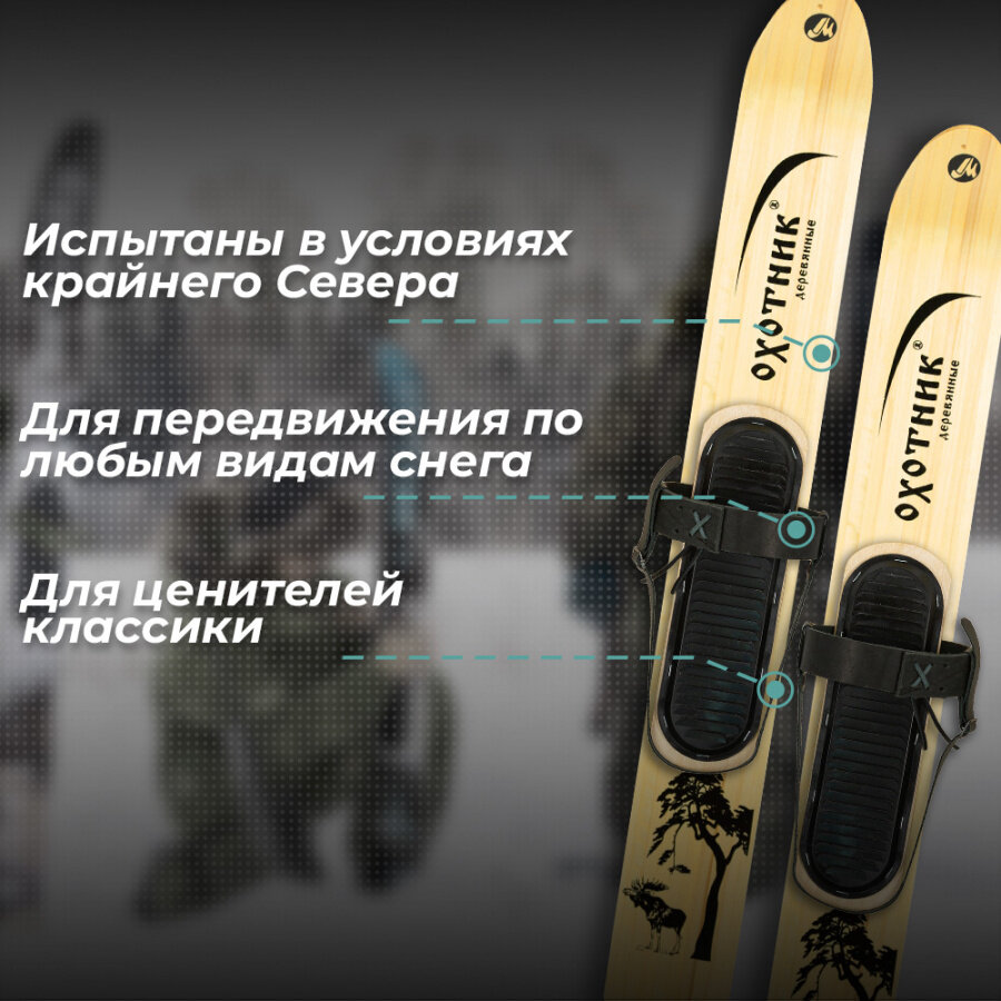 Лыжи охотничьи деревянные Маяк Охотник 120 х 15 см с креплением кожа с пяткой информация: