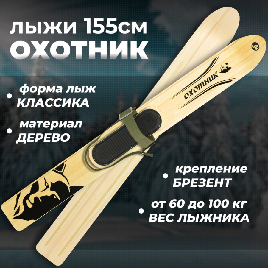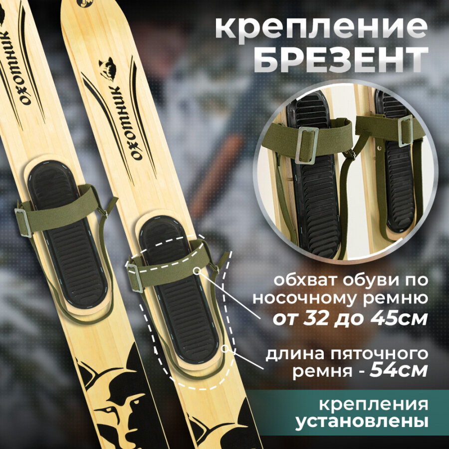 Лыжи охотничьи деревянные Маяк Охотник 155 х 15 см с креплением брезент информация: