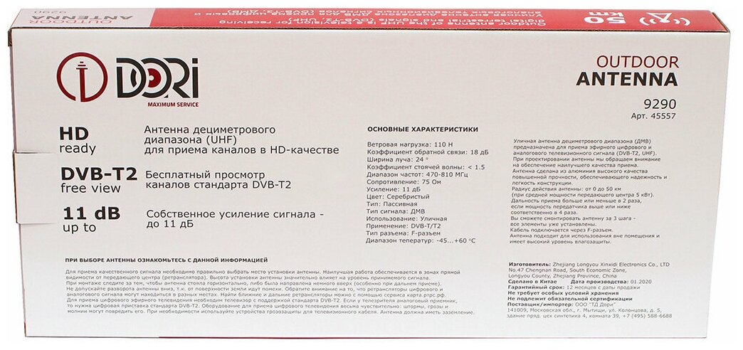 TV Антенна уличная DORI 9290 (пассивная, 11 дБ), до 50км информация: