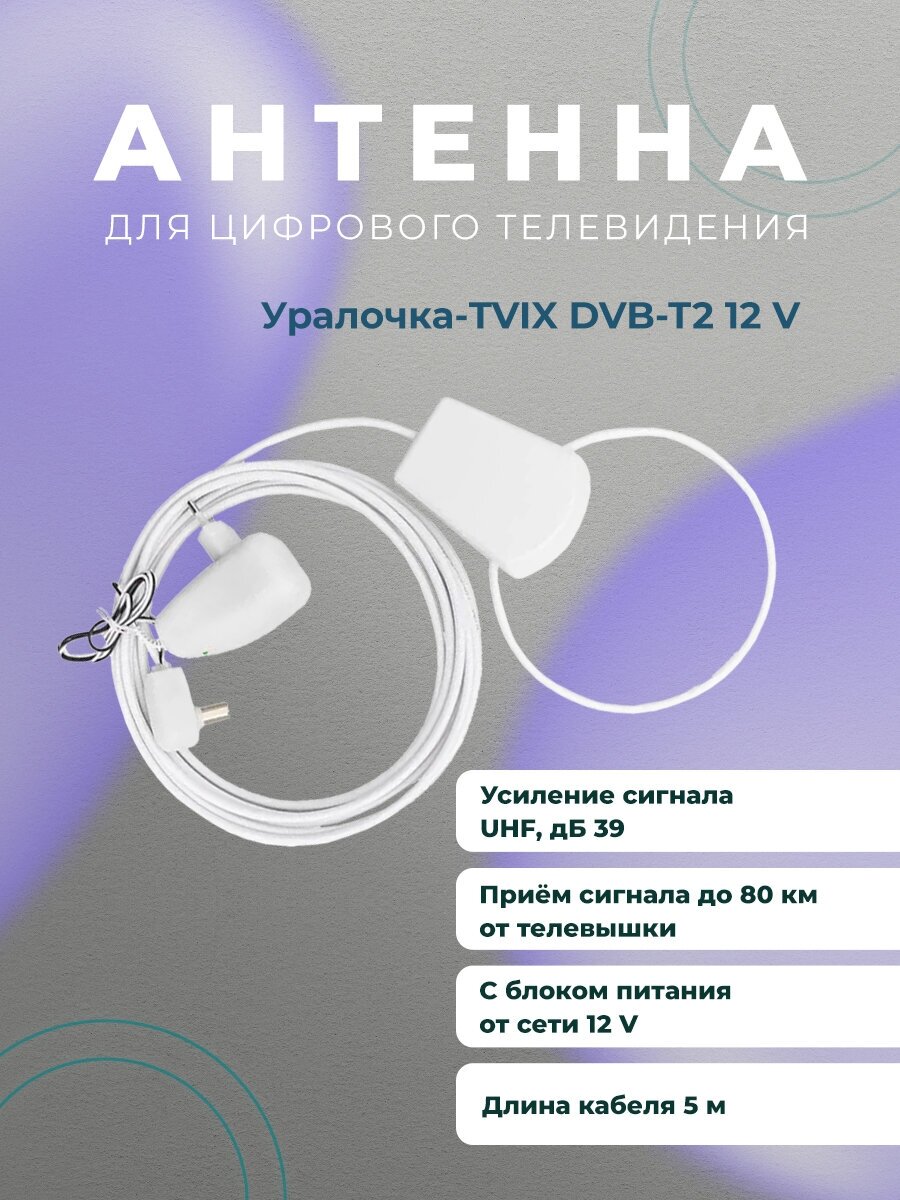 10 цен на Антенна DVB-T2 комнатная с блоком 12В "Уралочка" с присоской (5 метров)