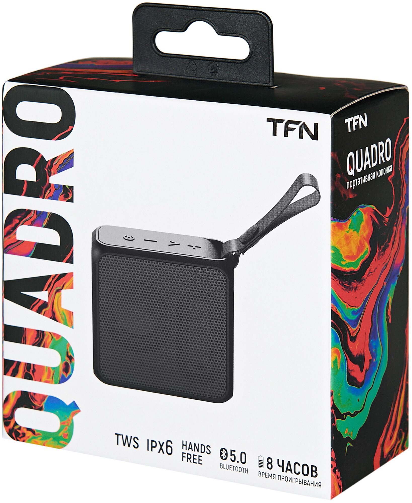Портативная колонка TFN Quadro, 3Вт, Bluetooth 5.0, microSD, microUSB, IPX6, 1500мАч, черная