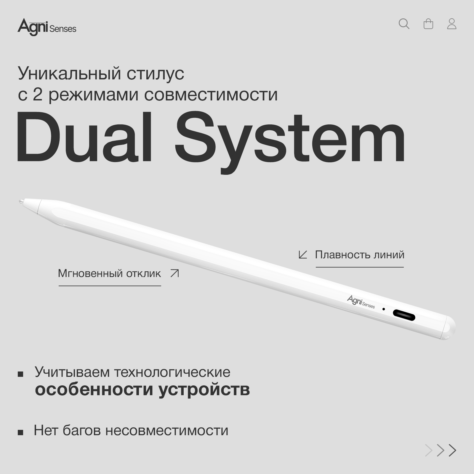 Стилус AGNI Senses Dual, универсальный, для смартфонов Apple iPhone и Android, планшетов iPad, Xiaomi, Huawei информация: