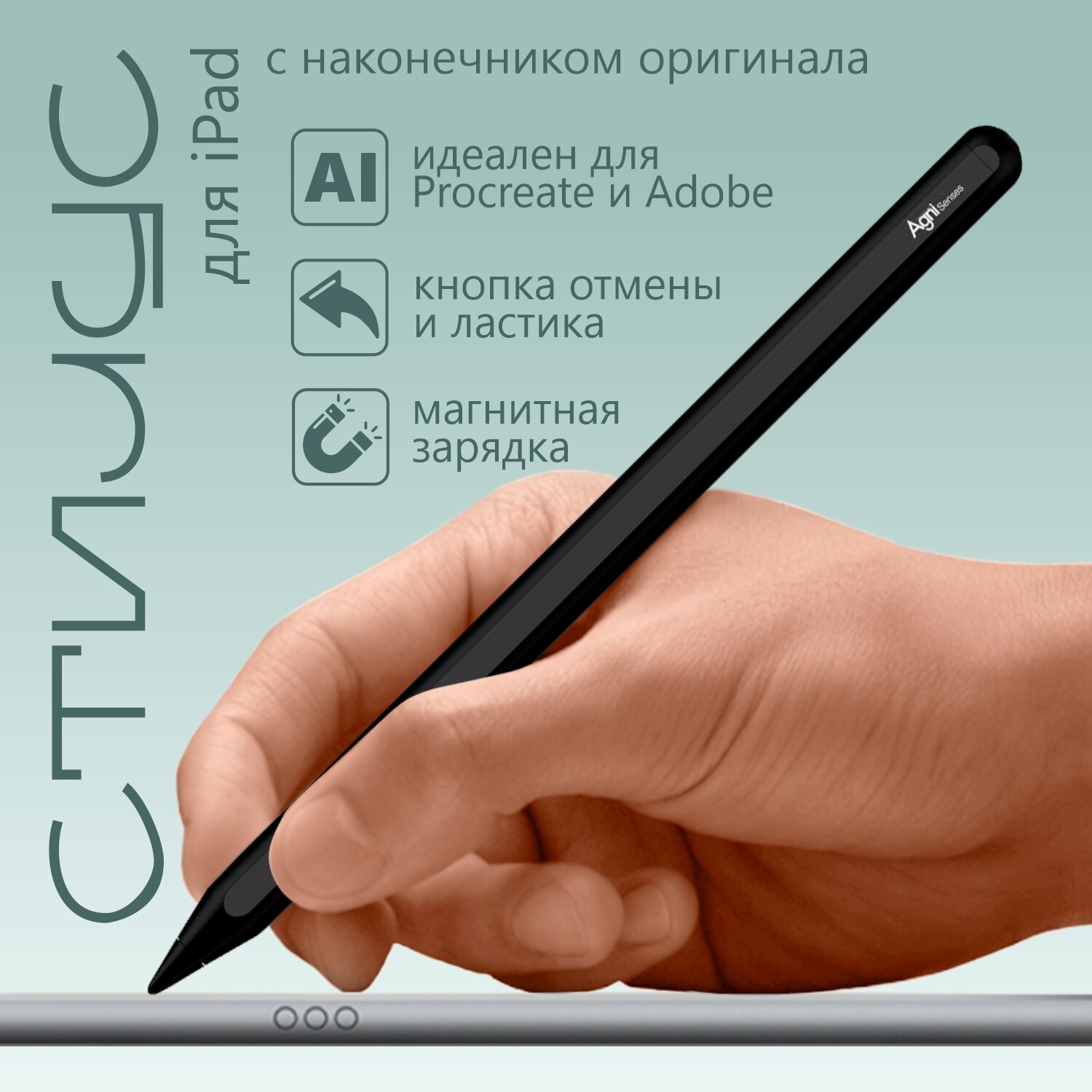 Стилус для iPad, AGNI Senses. Черный Apple pencil с USB-C для планшета, с магнитным креплением, для iPad 2024, Air, Pro, Mini 2 985 ₽