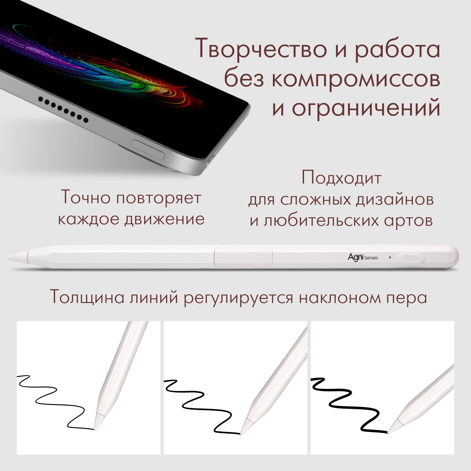 Стилус для iPad, AGNI Senses, apple pencil для планшетов айпад эпл с магнитной зарядкой, с изменением толщины линии от угла наклона и защитой от прикосновения 2 995 ₽
