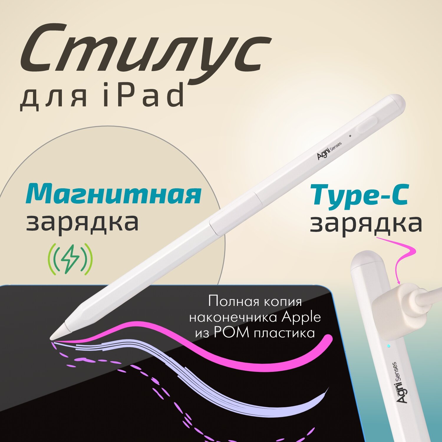 10 цен на Стилус для iPad, все модели 2018-2024, AGNI Senses. Apple pencil 2 для планшетов с магнитной зарядкой и Type-C