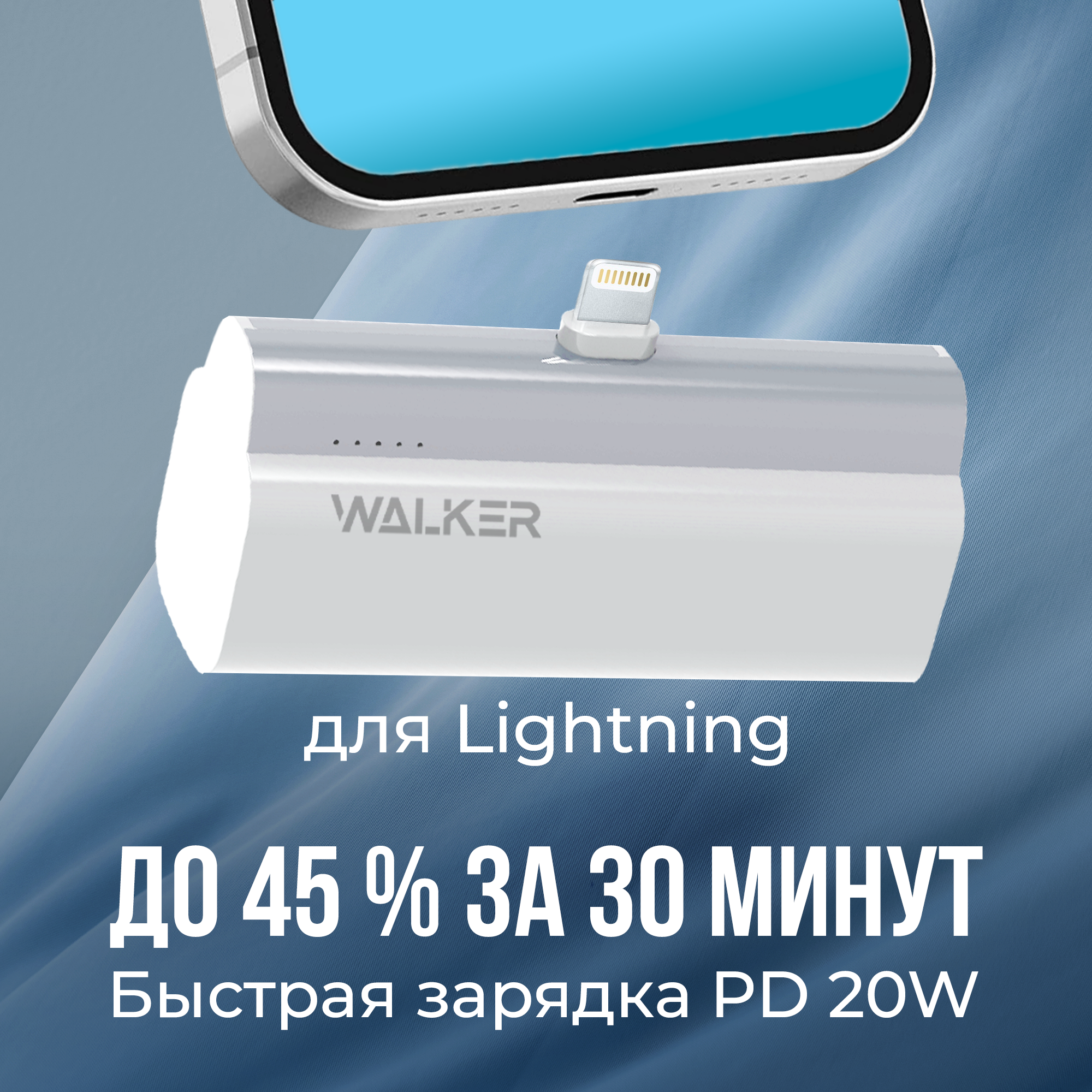Повербанк для айфона 5000 mAh, разъем Lightning, WALKER, WB-960, белый / повербанк, powerbank, пауэр банк, внешний аккумулятор, power bank, павербанк информация: