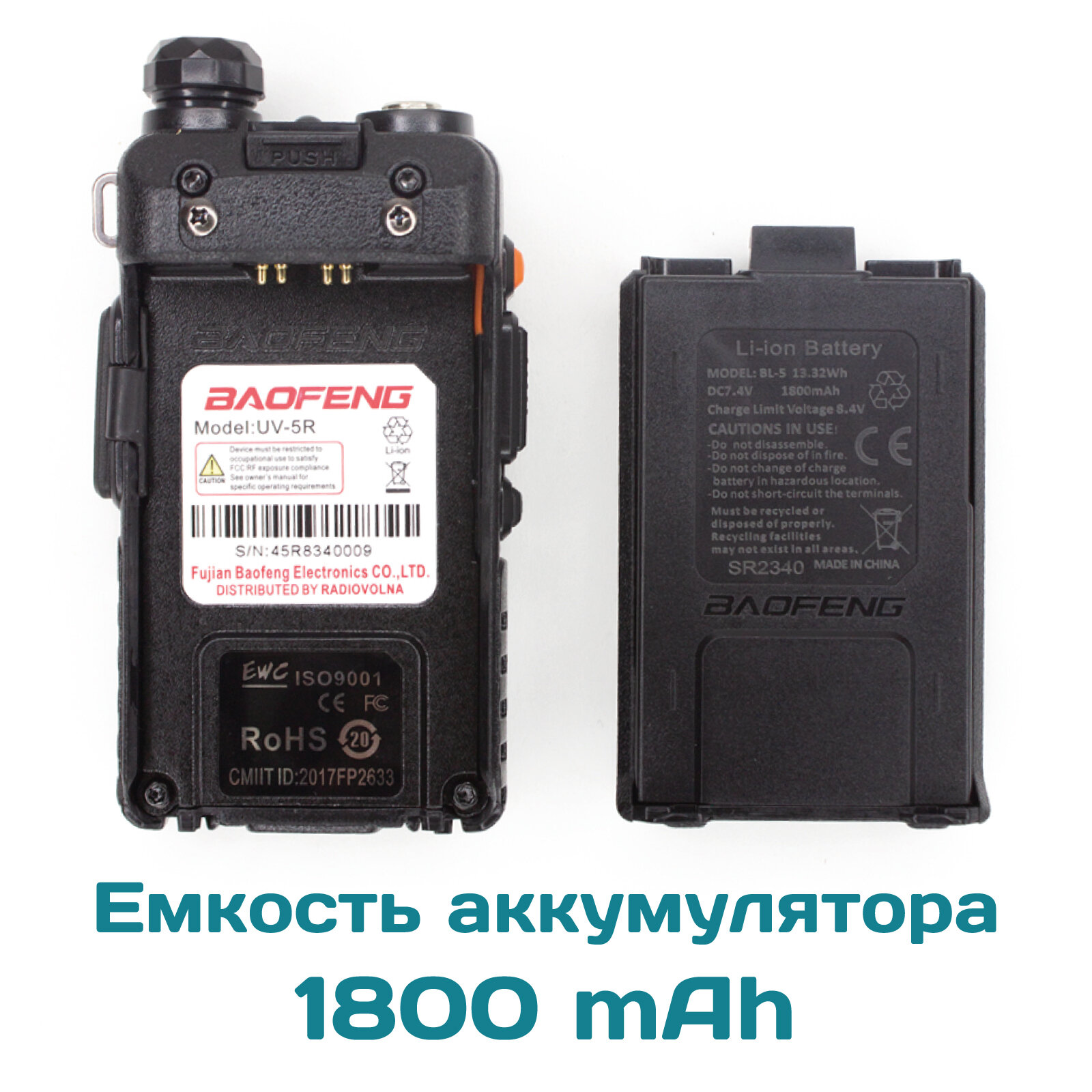 Рация Baofeng UV-5R 5W + дополнительный аккумулятор 1800 мАч информация: