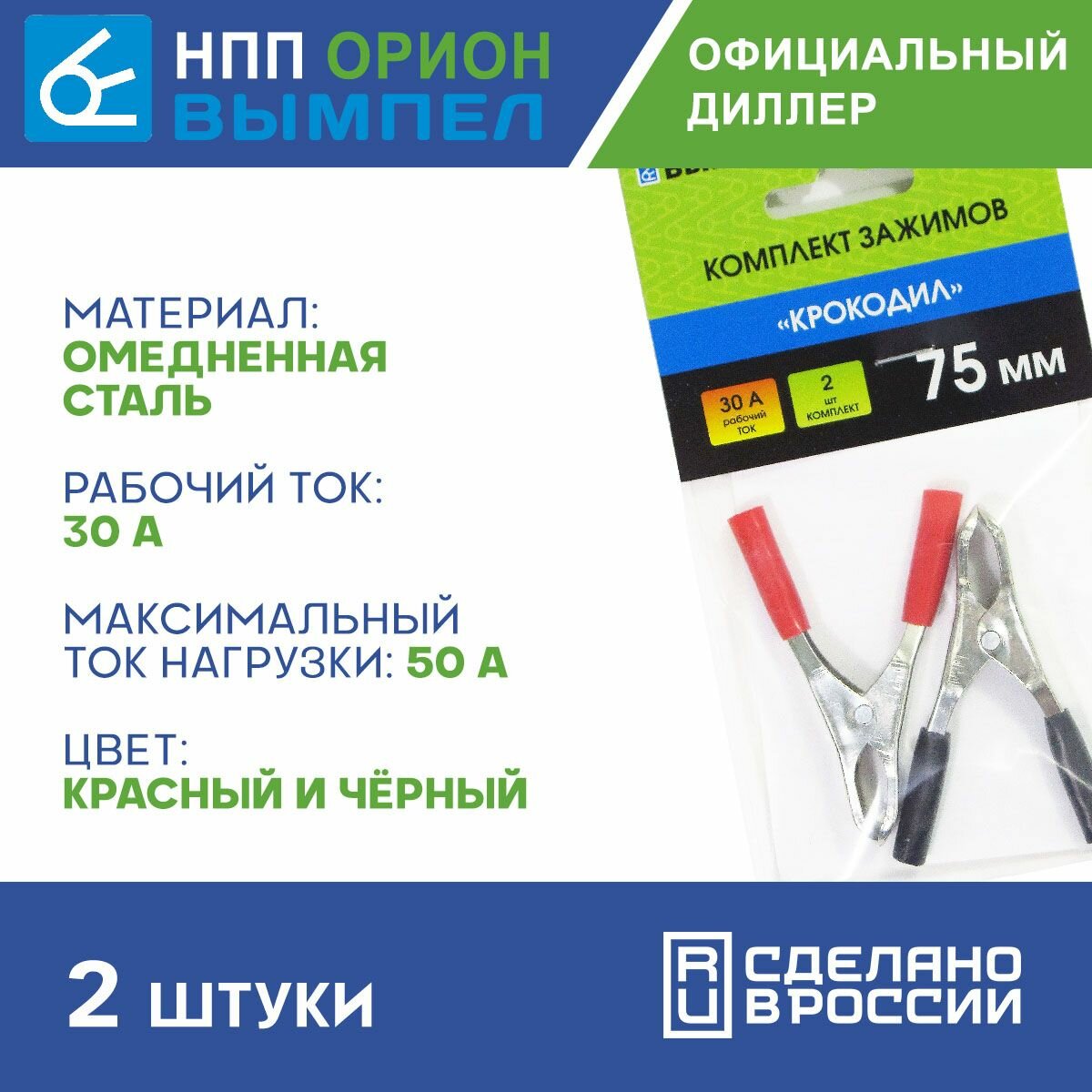 Комплект зажимов "крокодил" Вымпел 75 мм (красный + черный) 275 ₽