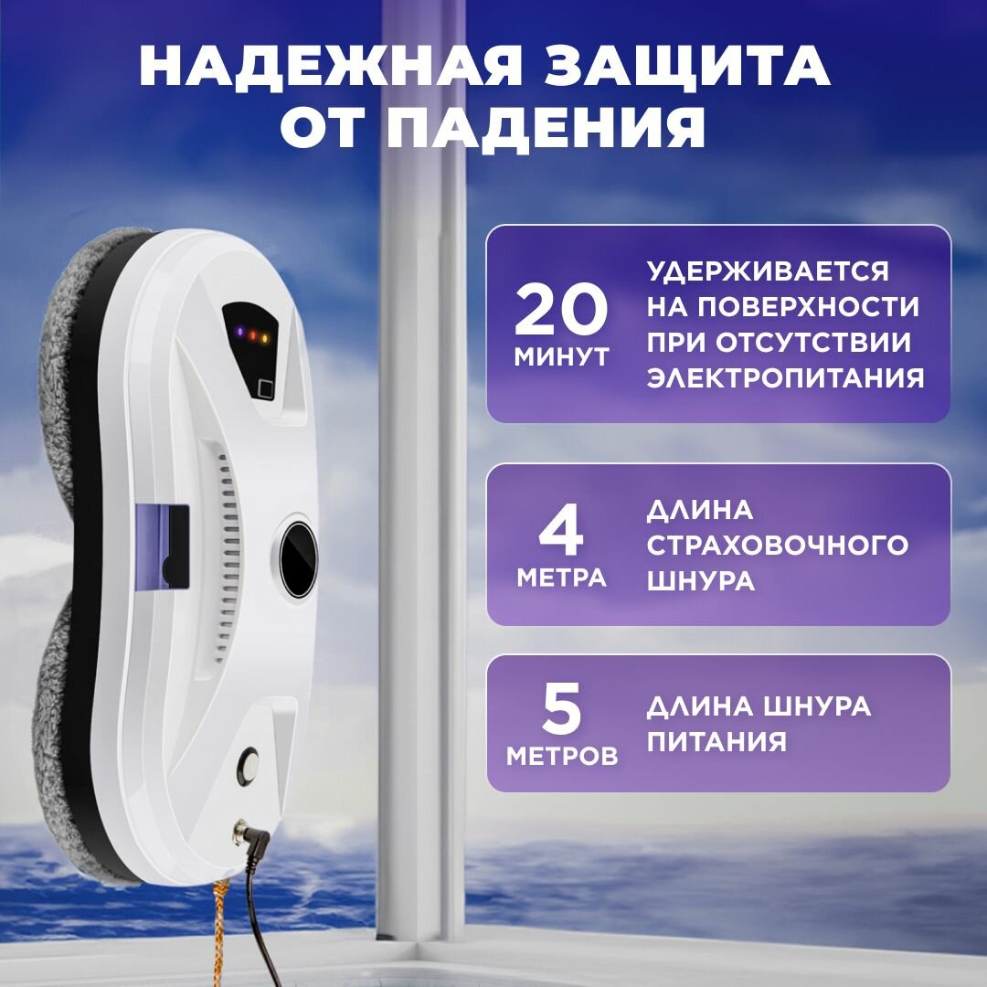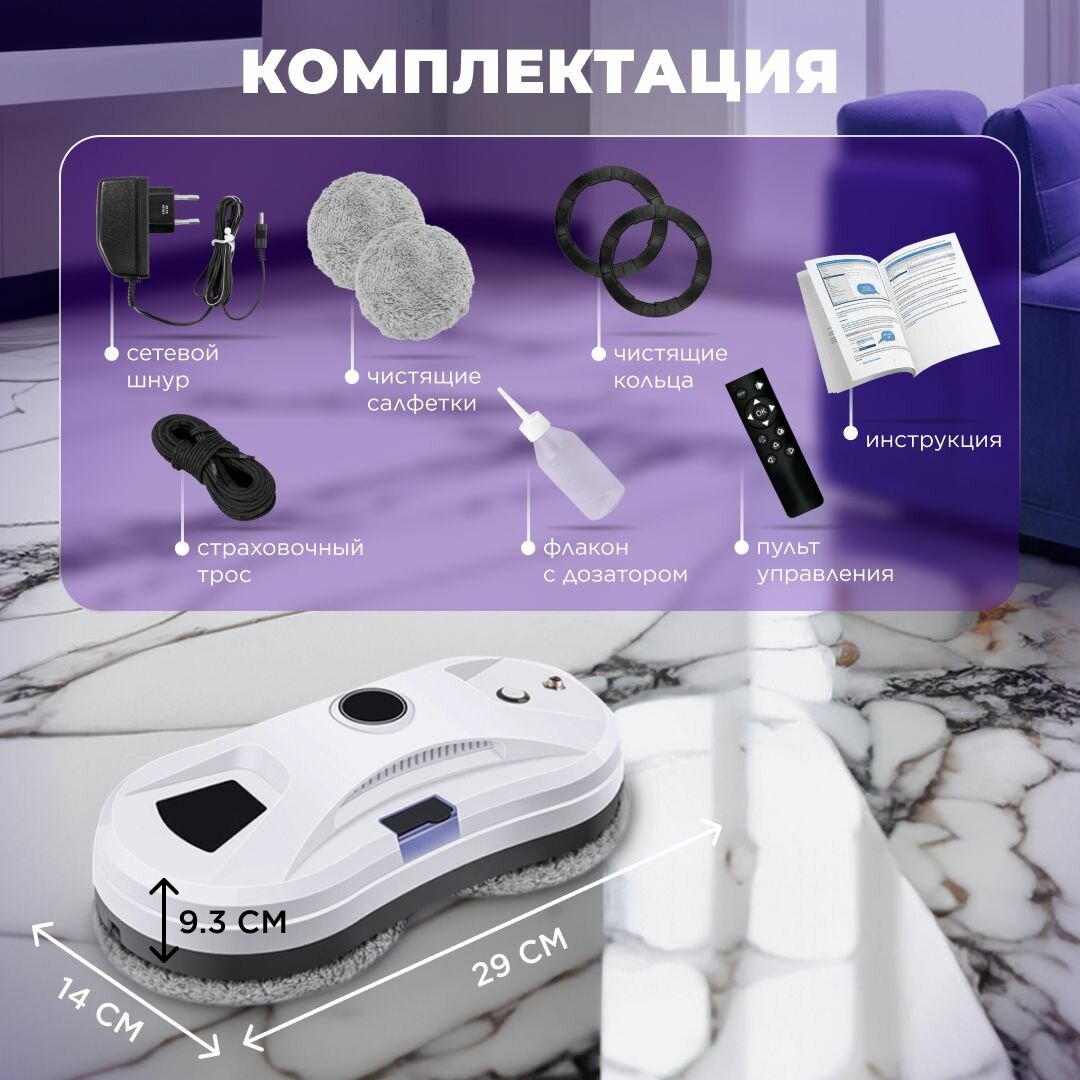 Робот-мойщик окон, с распылителем, страховочный шнур 4 м, пульт ДУ, 90 Вт, 10 сменных тряпок